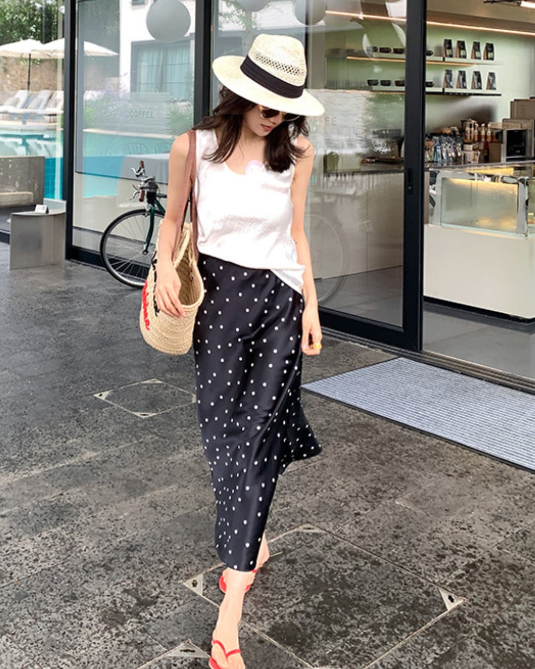 #サテンキャミ #光沢トップス #フェミニンコーデ #インナーにも◎ #Vネックキャミ #上品スタイル