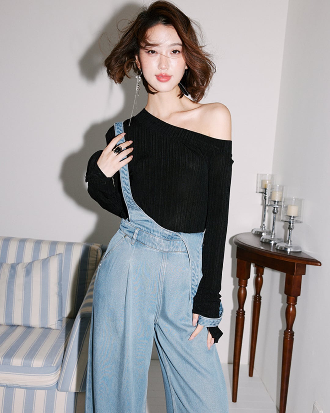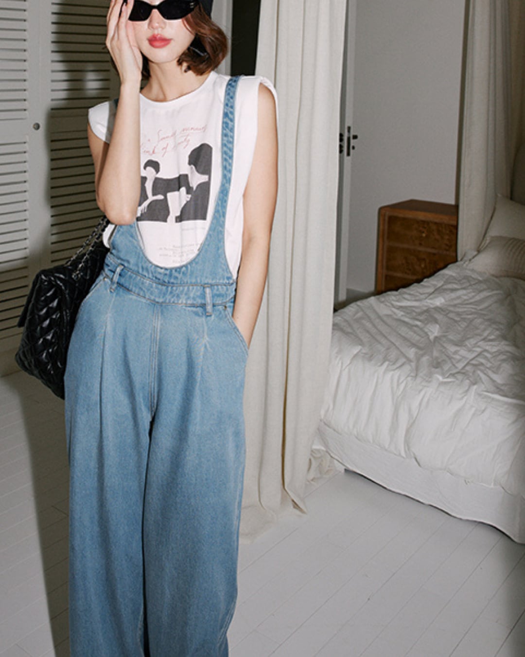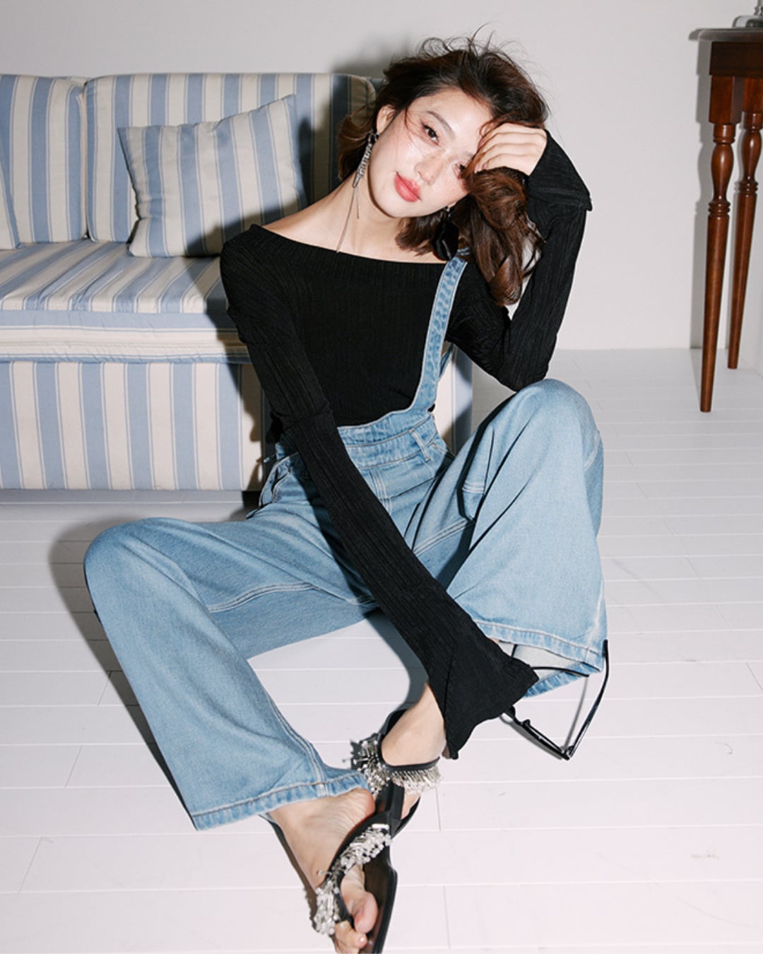 #サロペット #デニムブルー #ハイウエスト #ワイドパンツ #カジュアル #ストリート #シンプルコーデ