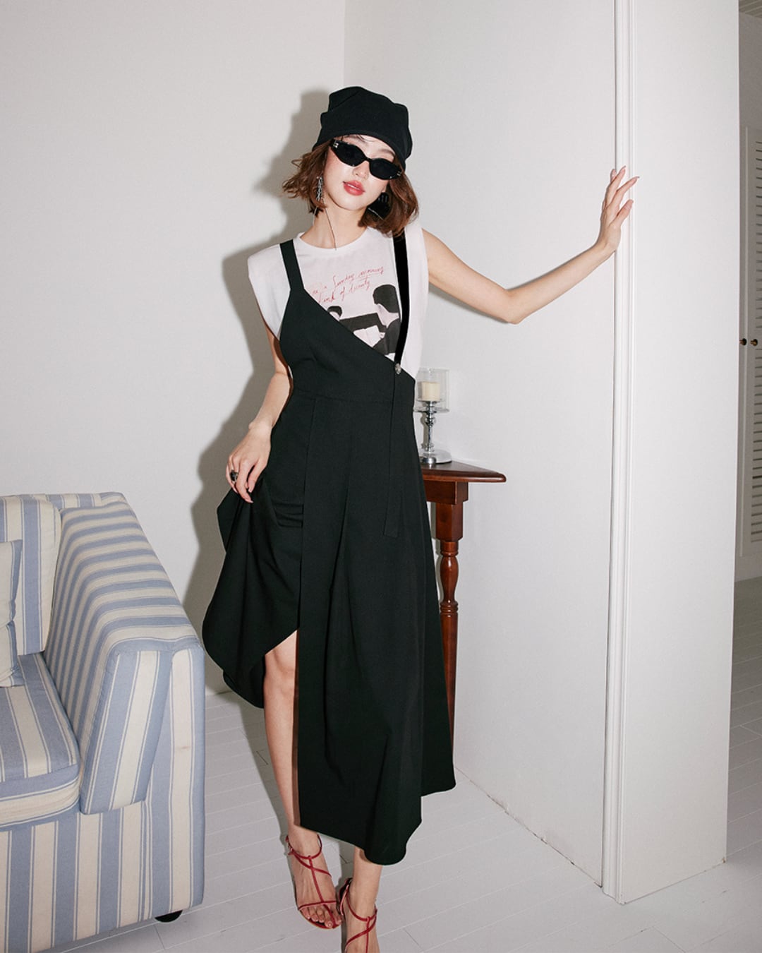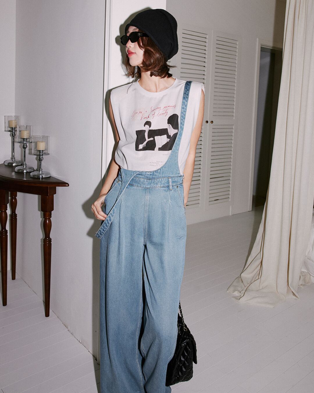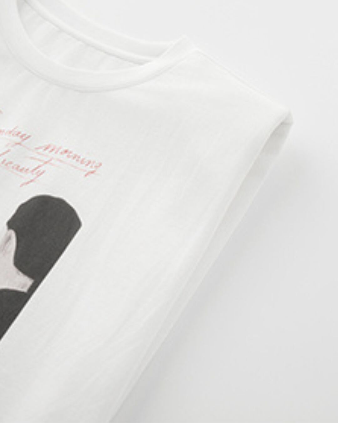 #ノースリーブ #ホワイトTシャツ #プリントT #肩パッド入り #アートプリント #モードカジュアル