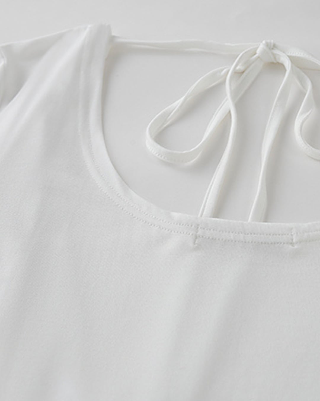 #バックオープン #ロングスリーブ #ドレープ #リボンストラップ #抜け感 #ミニマル