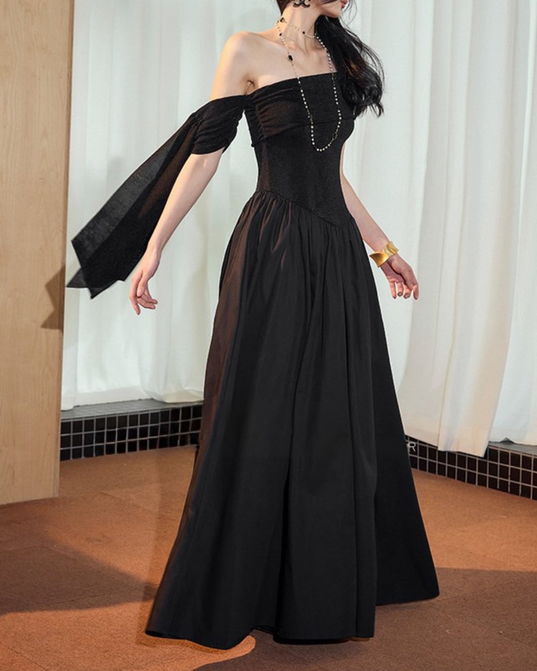 #オフショルダー #ロングワンピース #フレアスカート #ブラックドレス #ドレッシー #パーティースタイル