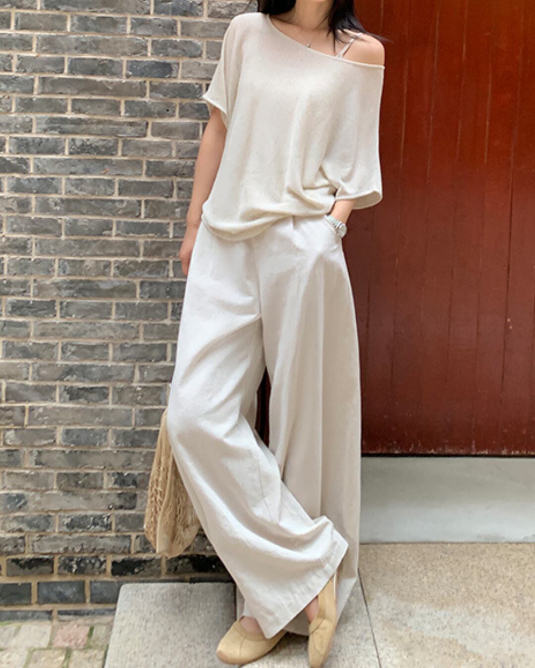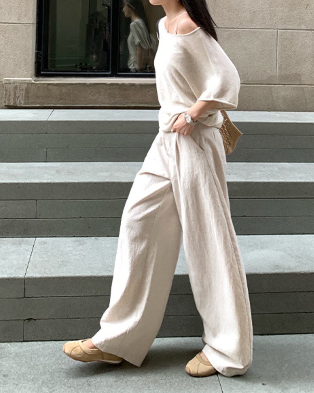 ドライなタッチの混紡素材で仕上げた、抜け感のあるルーズニットトップ。ラフに着崩せるゆったりとしたシルエットと、シアーな質感が夏の大人カジュアルにぴったり。一枚ではもちろん、キャミとのレイヤードにもおすすめです。