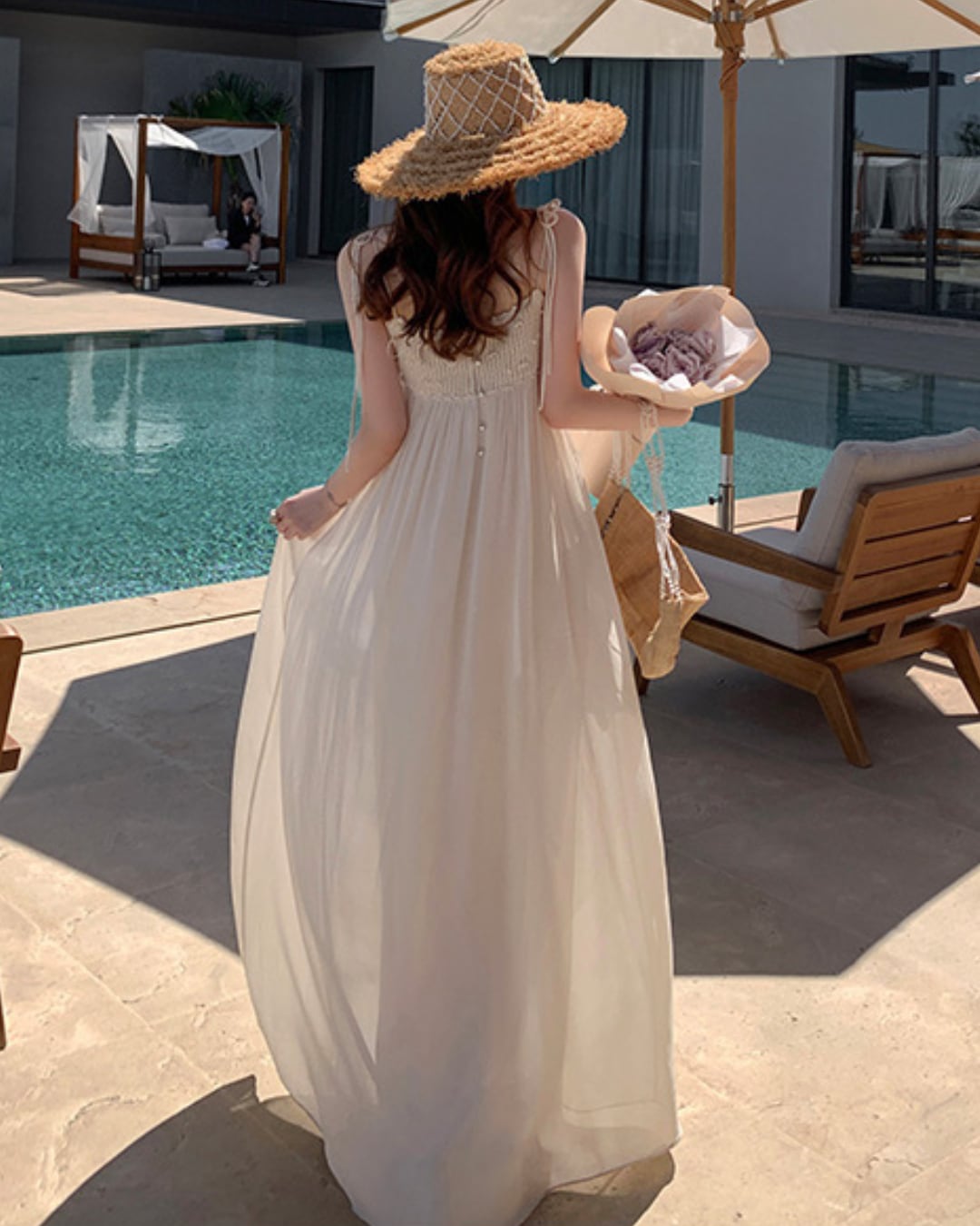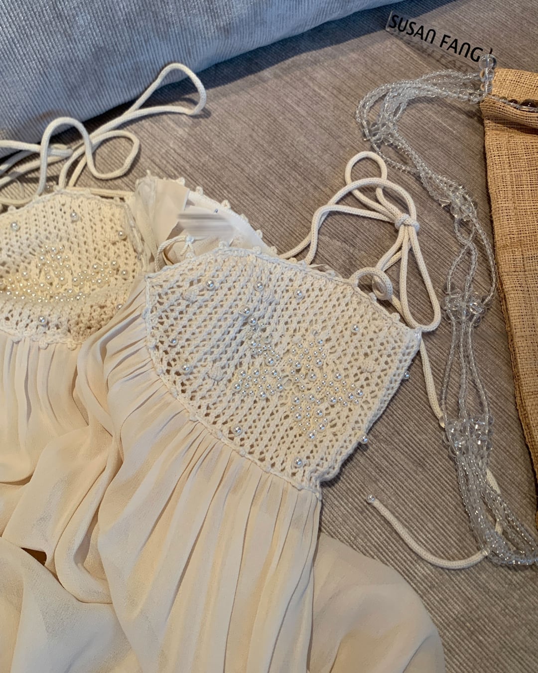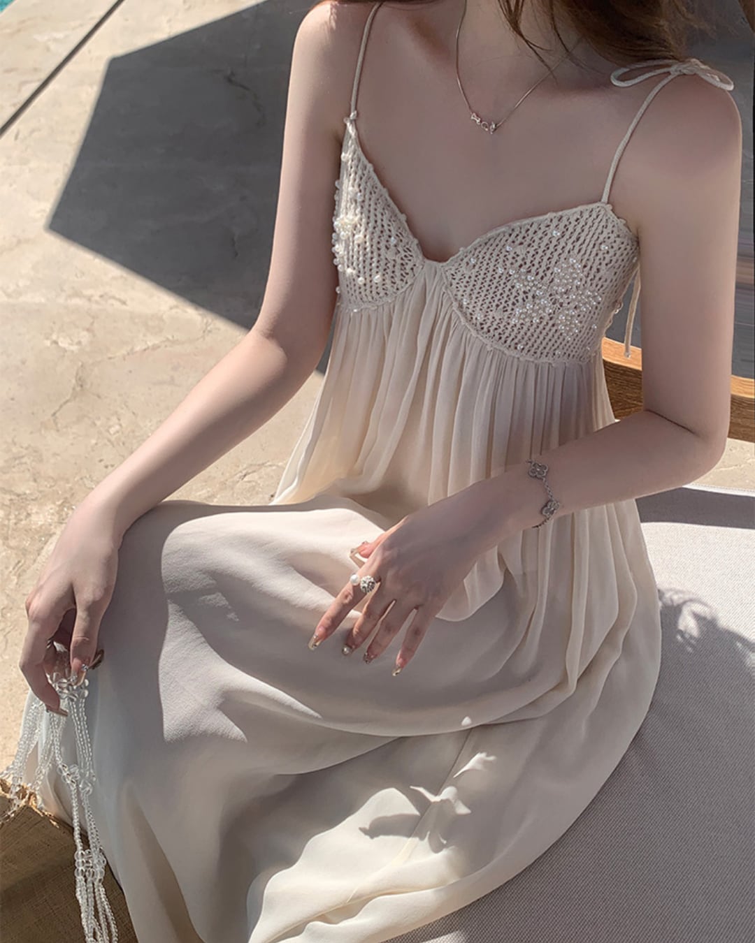 #レースワンピース #キャミワンピース #エレガントスタイル #リゾートワンピ #アイボリーコーデ #Aラインシルエット