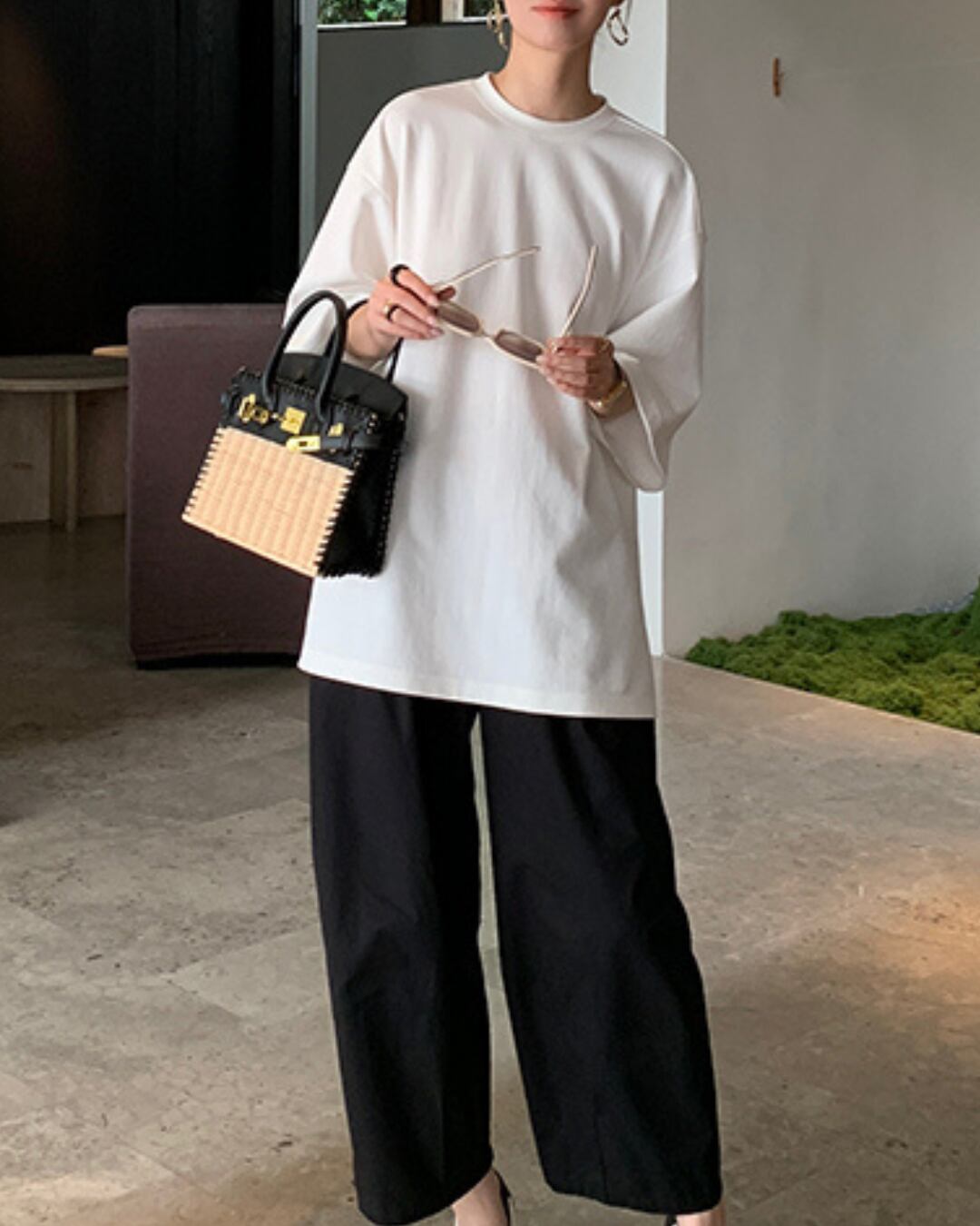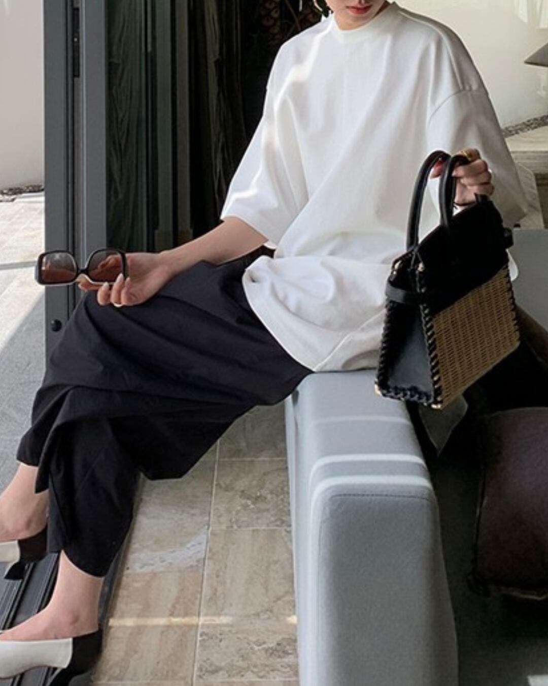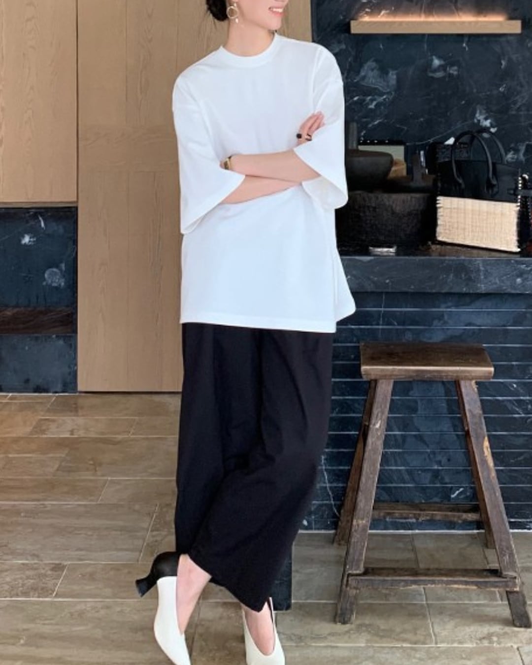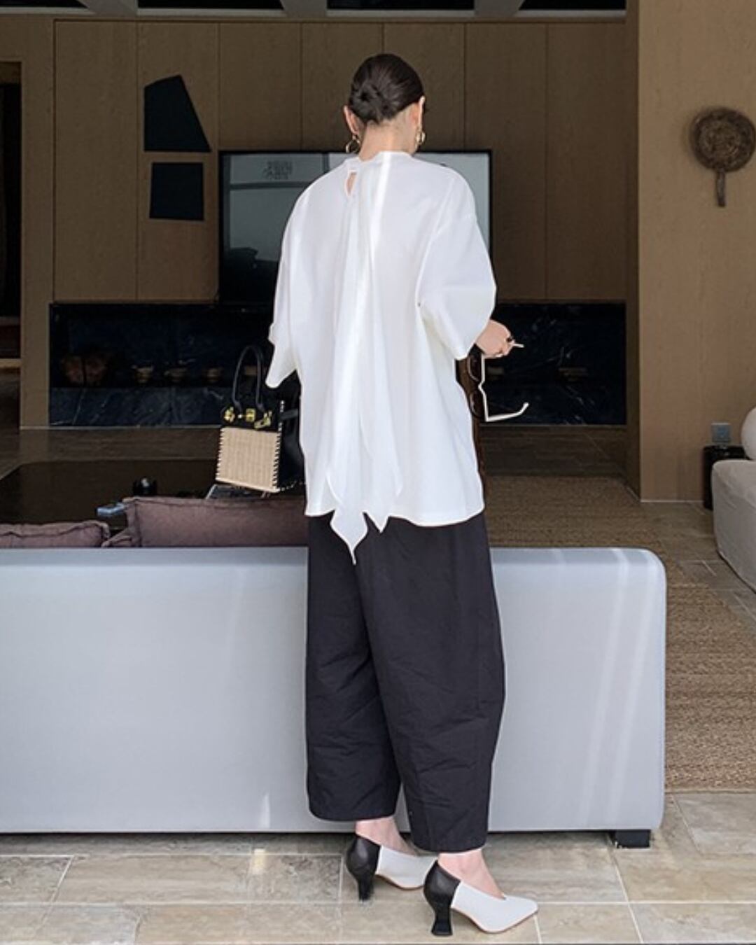 #バックリボン #ドレープ #ラウンドネック #ゆったりシルエット #モノトーンコーデ #夏トップス