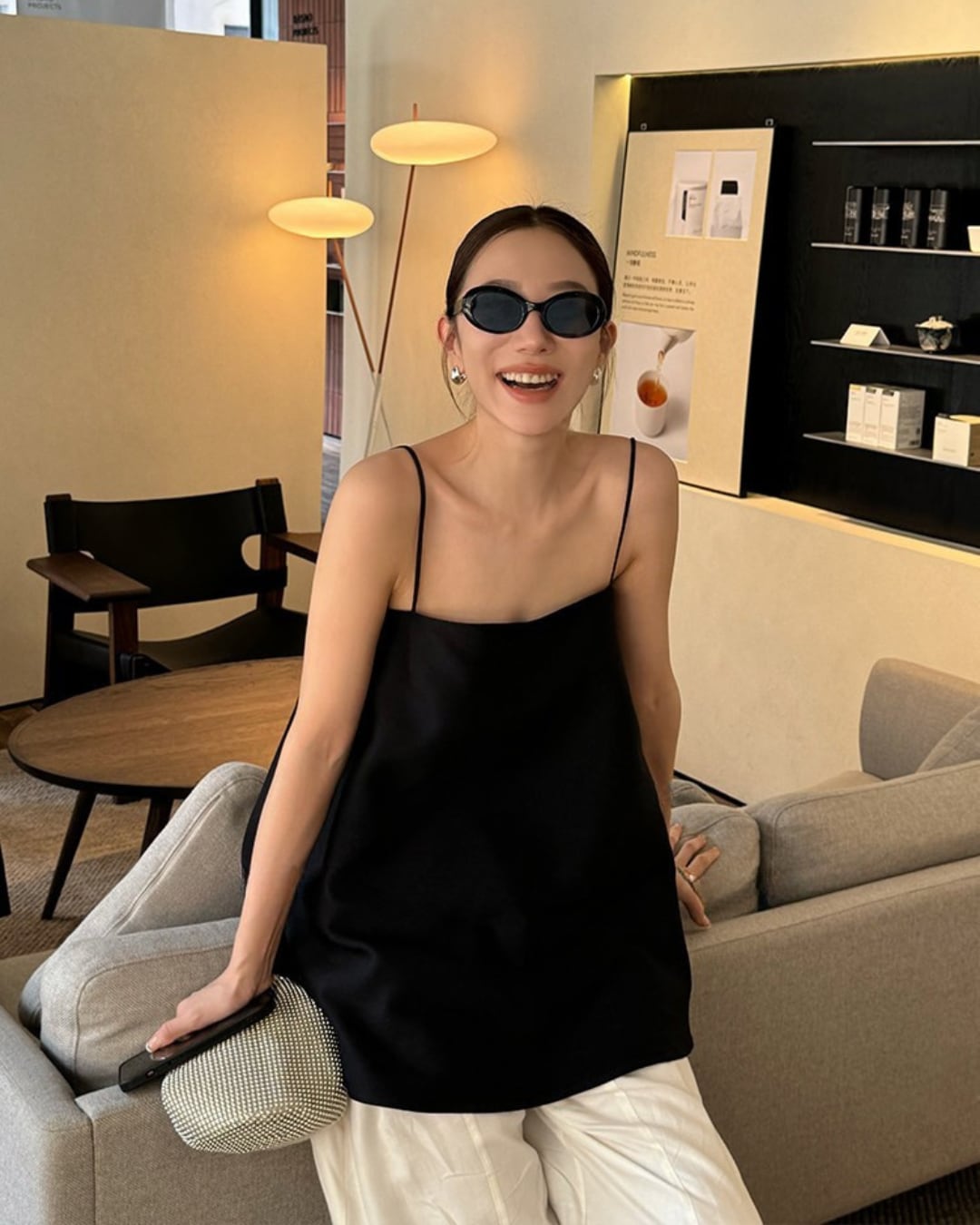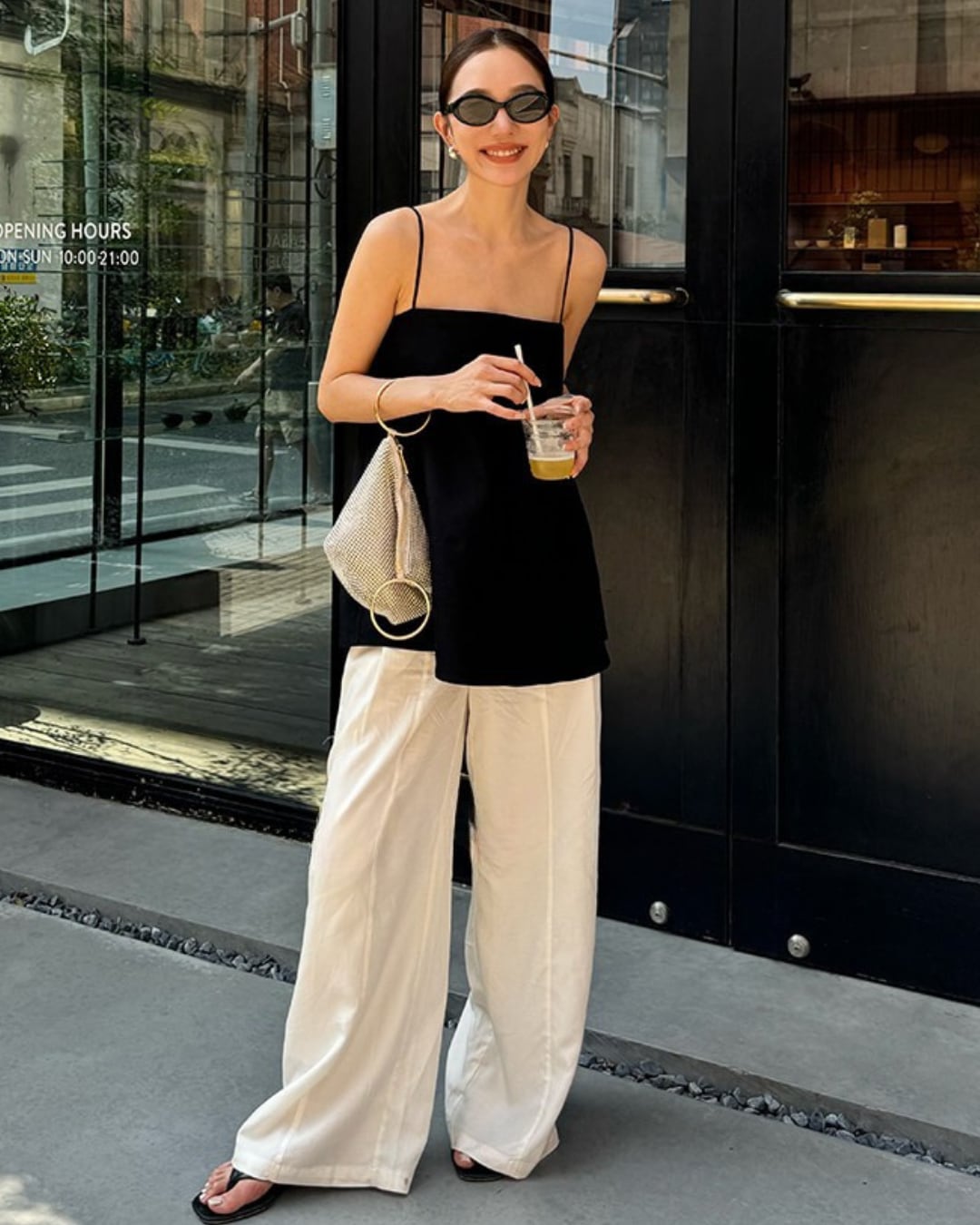 #キャミソール #ブラックコーデ #大人カジュアル #サマーコーデ #ミニマルトップス #スッキリシルエット
