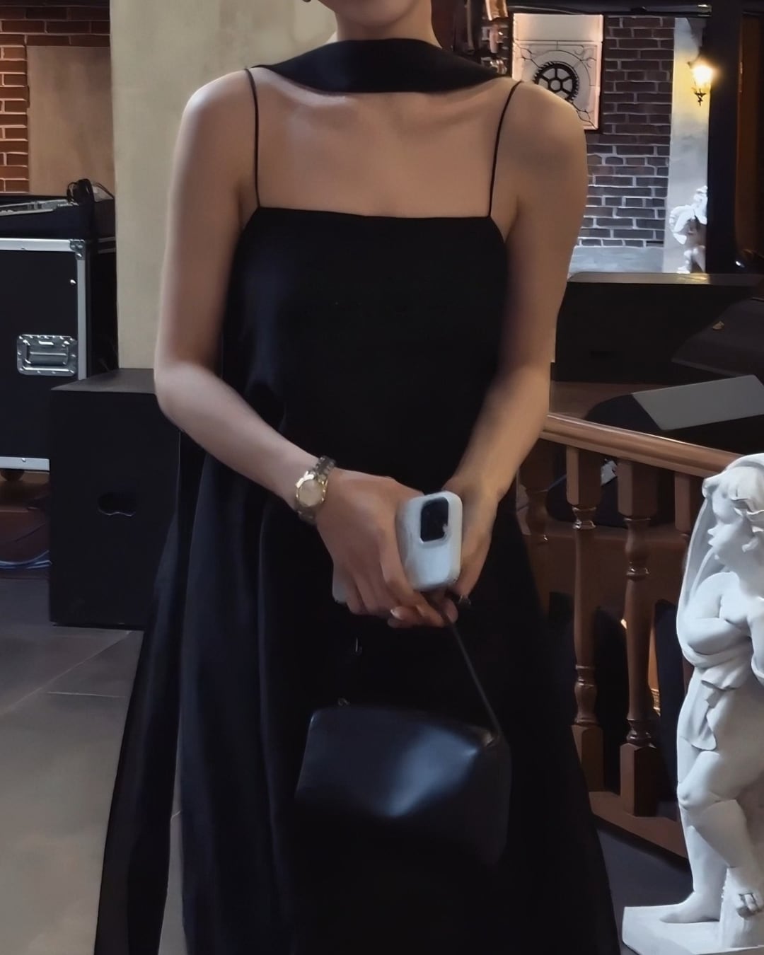#キャミワンピース #ブラックドレス #Aラインシルエット #ミニマルコーデ #小柄女子コーデ #大人ドレス #サマードレス
