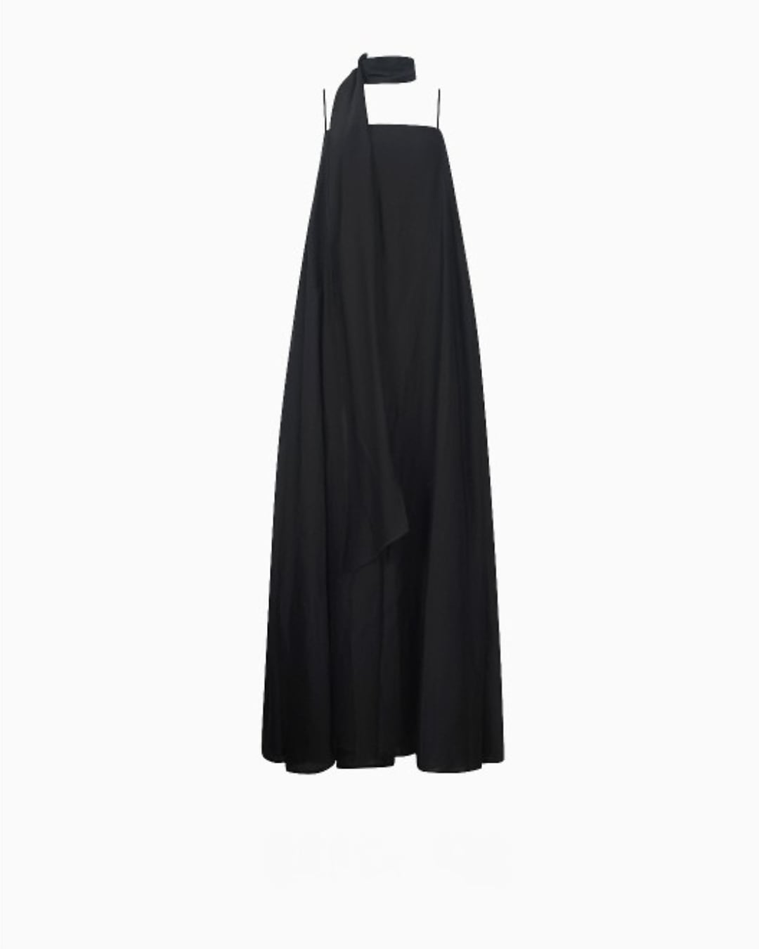ミニマルな美しさを極めたブラックキャミロングドレス。繊細な肩紐とすっきりとしたスクエアネックがデコルテを美しく引き立て、柔らかく上品な落ち感のあるAラインシルエットが洗練された印象に。小柄さん向けのショート丈もご用意しており、幅広い体型の方にフィットします。夏のパーティーシーンやディナー、特別なお出かけにぴったりの一枚です。