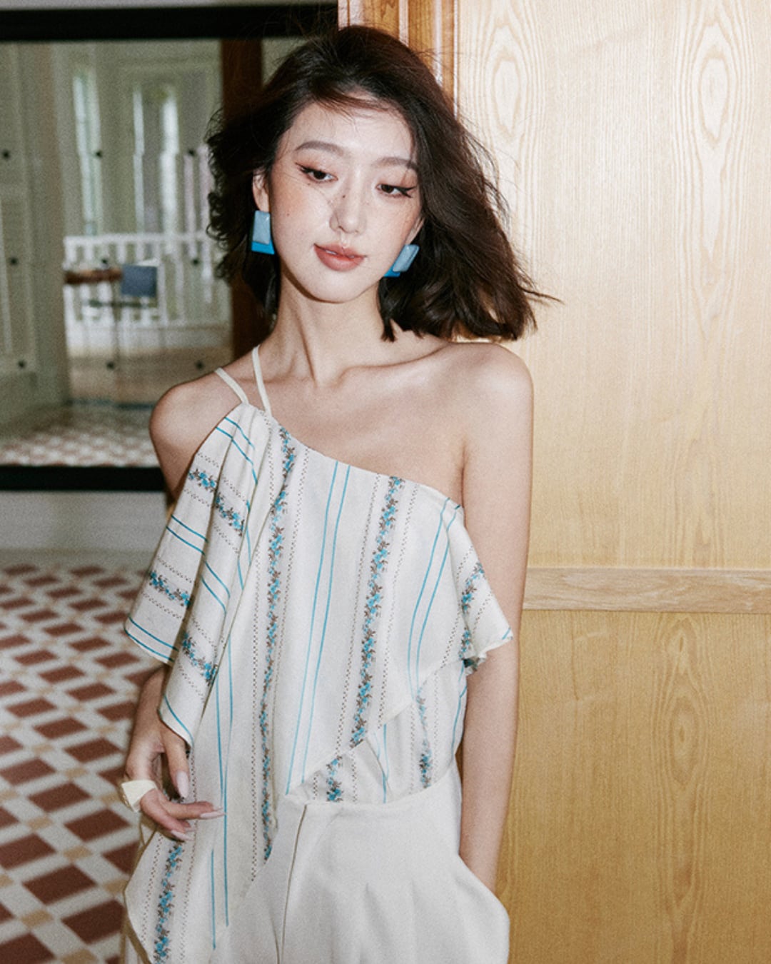 #アシンメトリー #オフショルダー #ストライプ #リゾート #コットン #ナチュラル