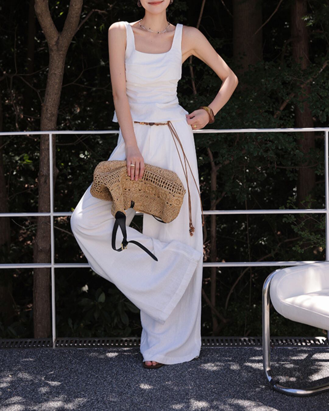 #スクエアネック #タンクトップ #リネン混 #夏トップス #ナチュラルコーデ #ショート丈