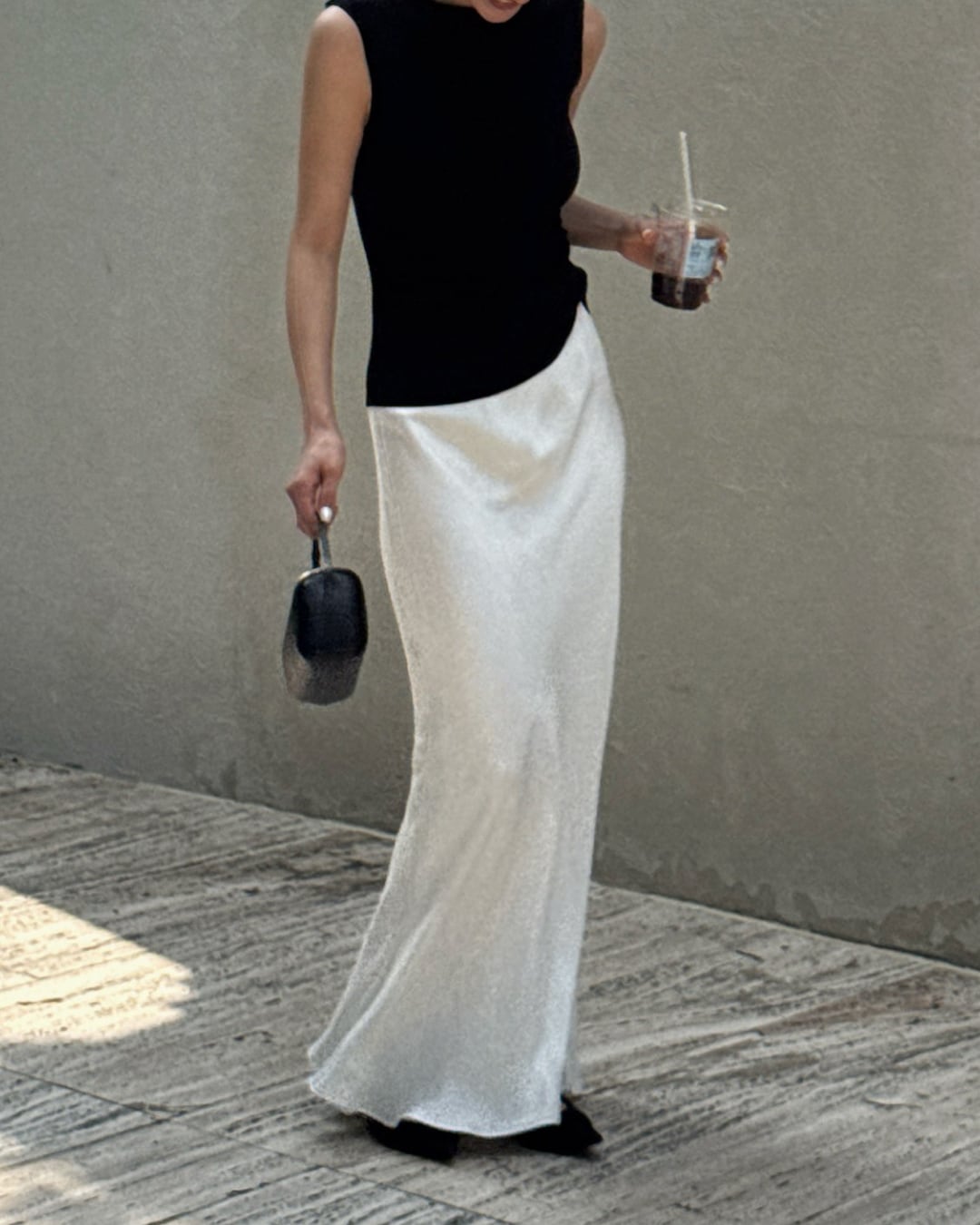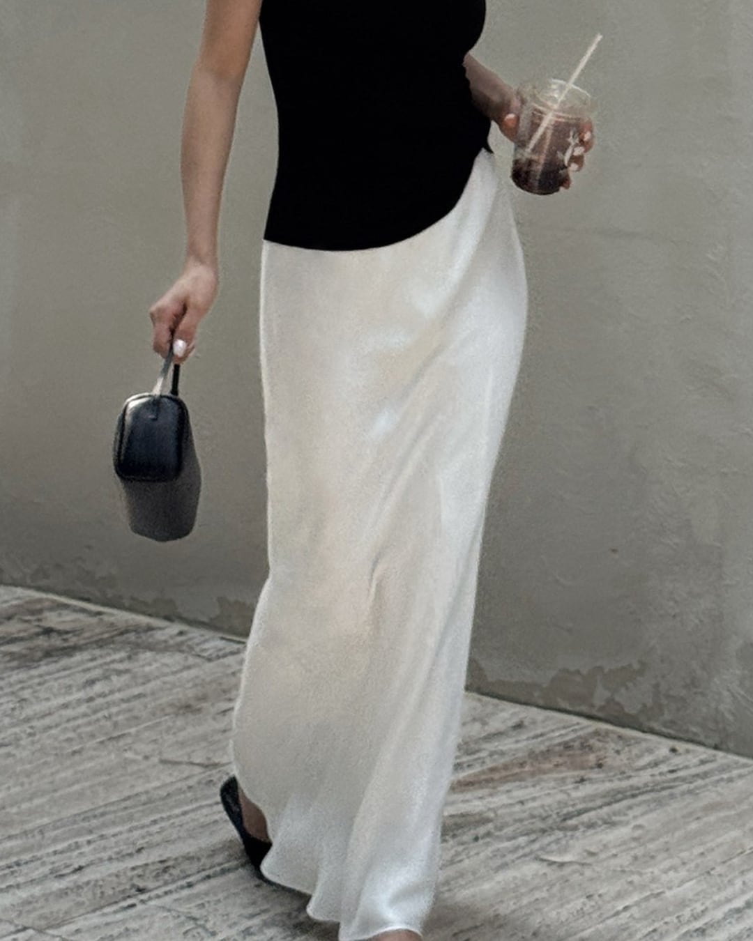 上品な光沢感と落ち感が魅力のサテンマキシスカート。シンプルなシルエットながら、しなやかなドレープが女性らしさを引き立て、ウエストはゴム仕様で履き心地も快適。パーティーやお出かけにもぴったりな、映える一着です。