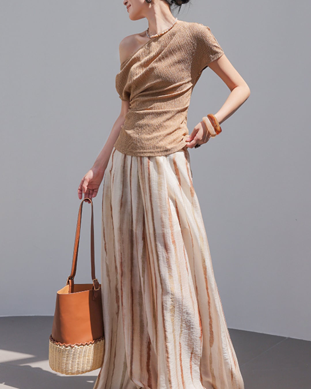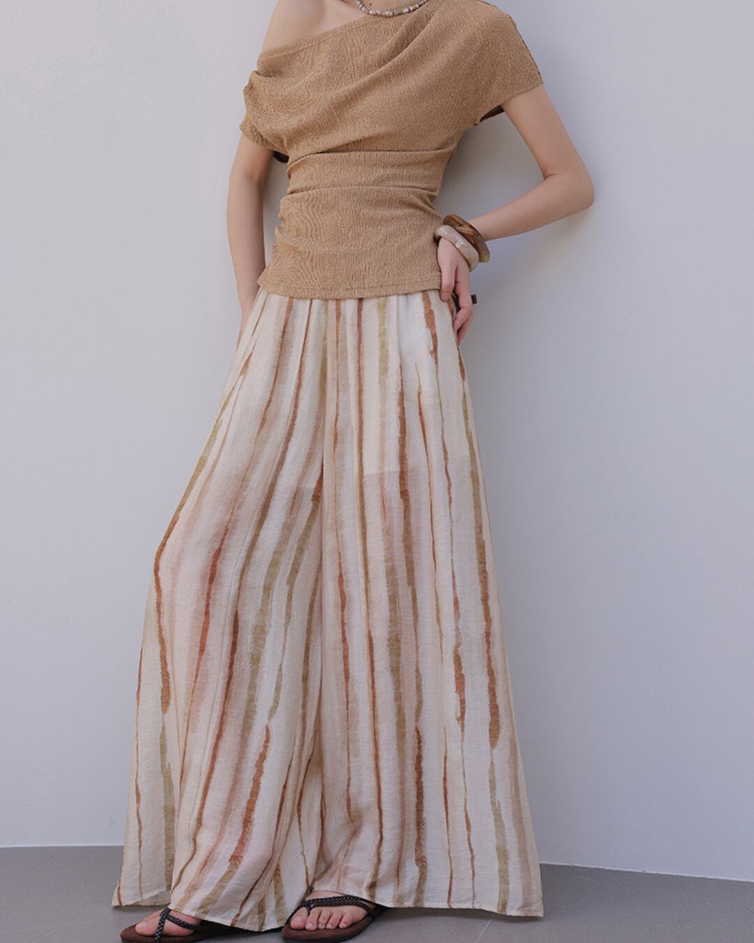 リラクシーな印象を与えるストライプ柄のワイドパンツ。テンセル混の柔らかな風合いで、涼しげな穿き心地が魅力です。ウエストゴム仕様でストレスフリーな着用感。リゾートやデイリーにも映える、夏の主役パンツです。