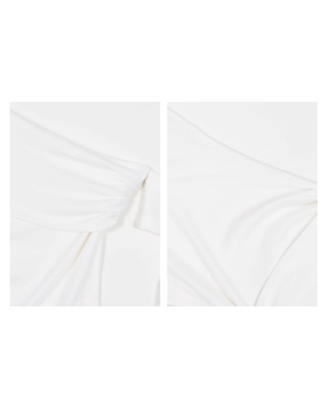 しなやかでフィット感のある素材を使用した、アシンメトリーなオフショルダーデザインのTシャツ。片方の肩を大胆に見せるヘルシーな肌見せが、大人の色気を演出。伸縮性のある生地で着心地も抜群。パンツにもスカートにも合わせやすい一着です。