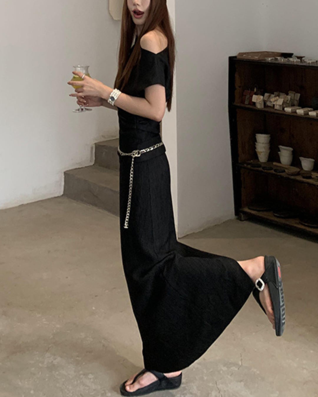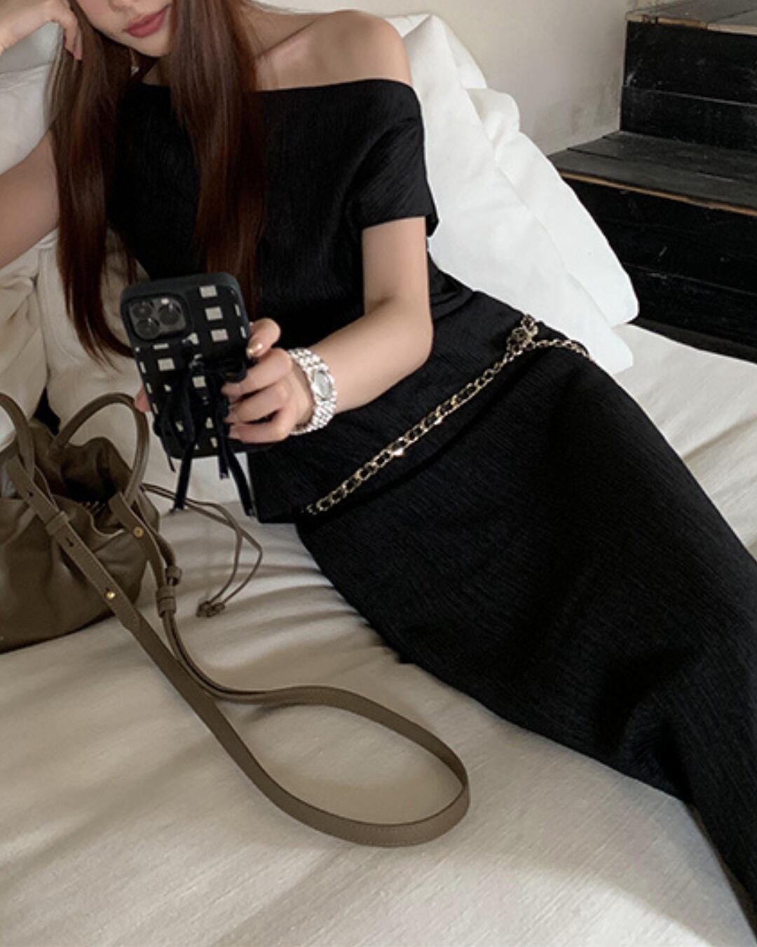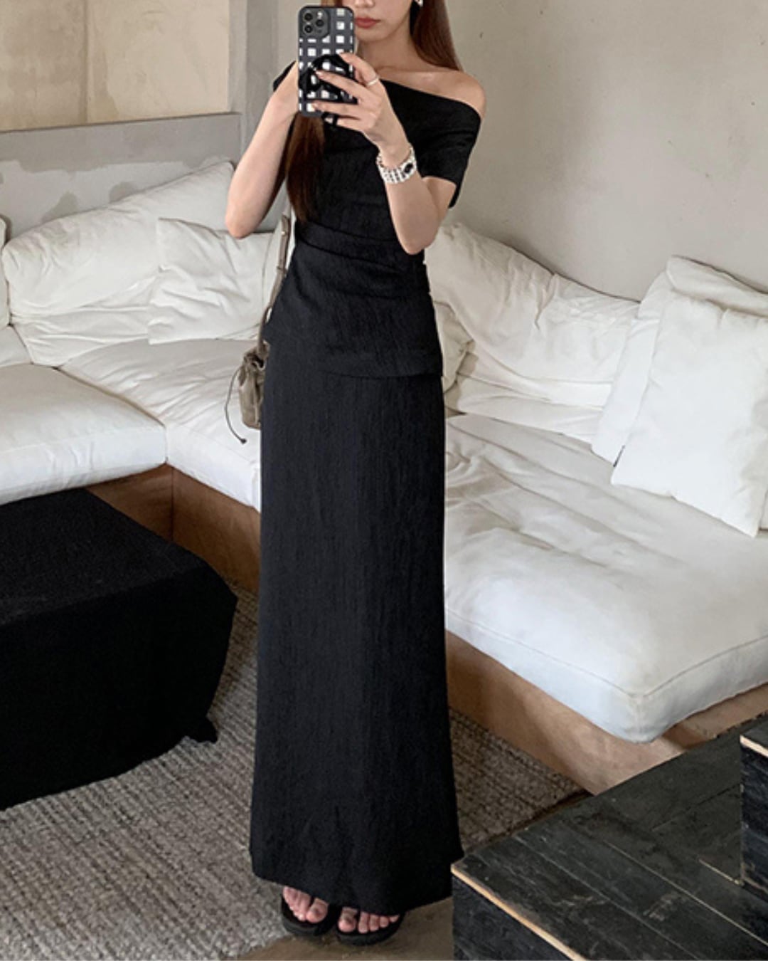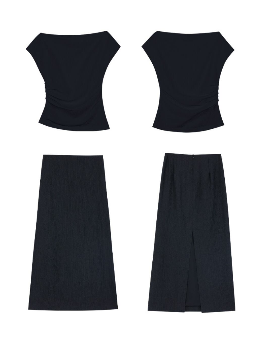 アシンメトリートップス×タイトスカートセットアップ S25563
