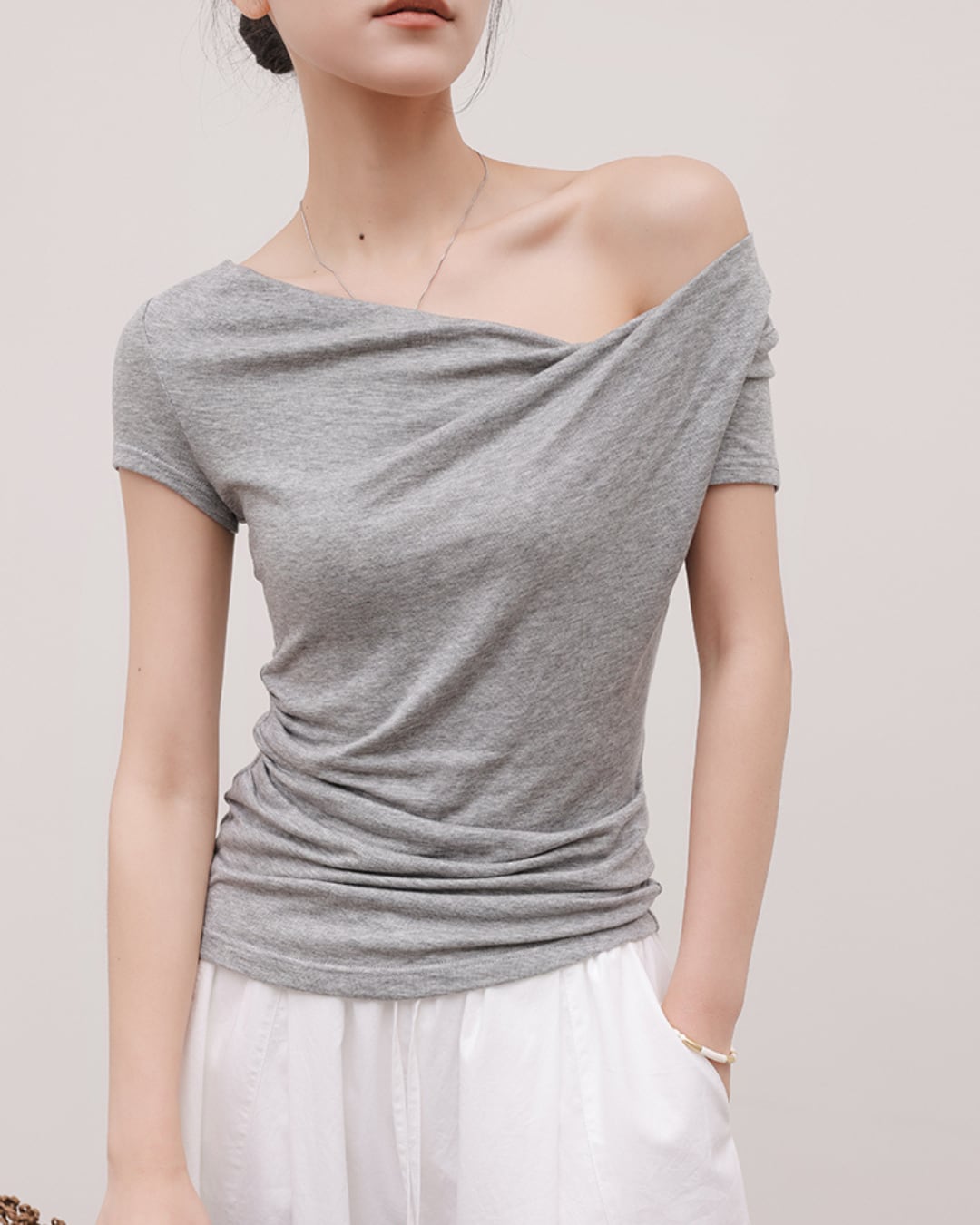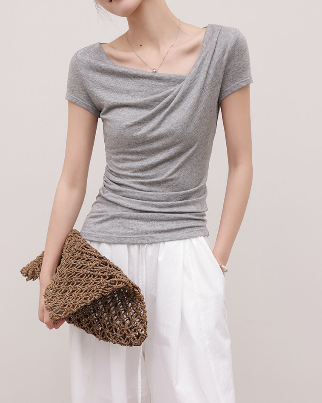 アシメトリードレープTシャツ S25554