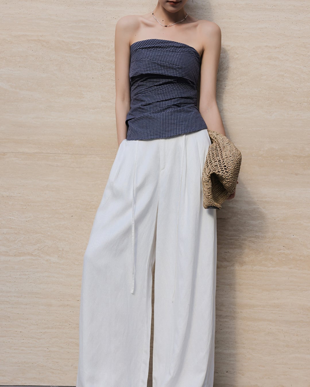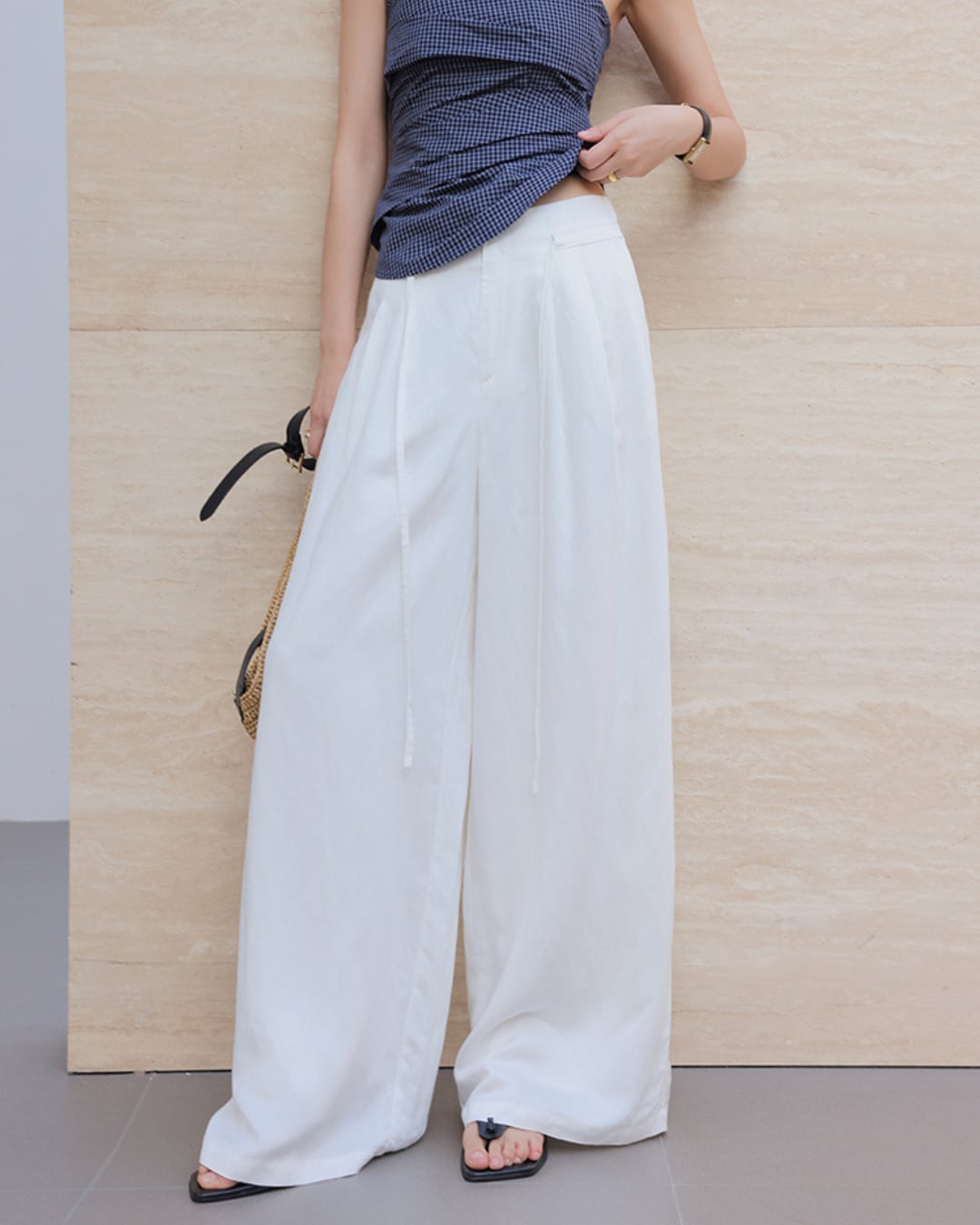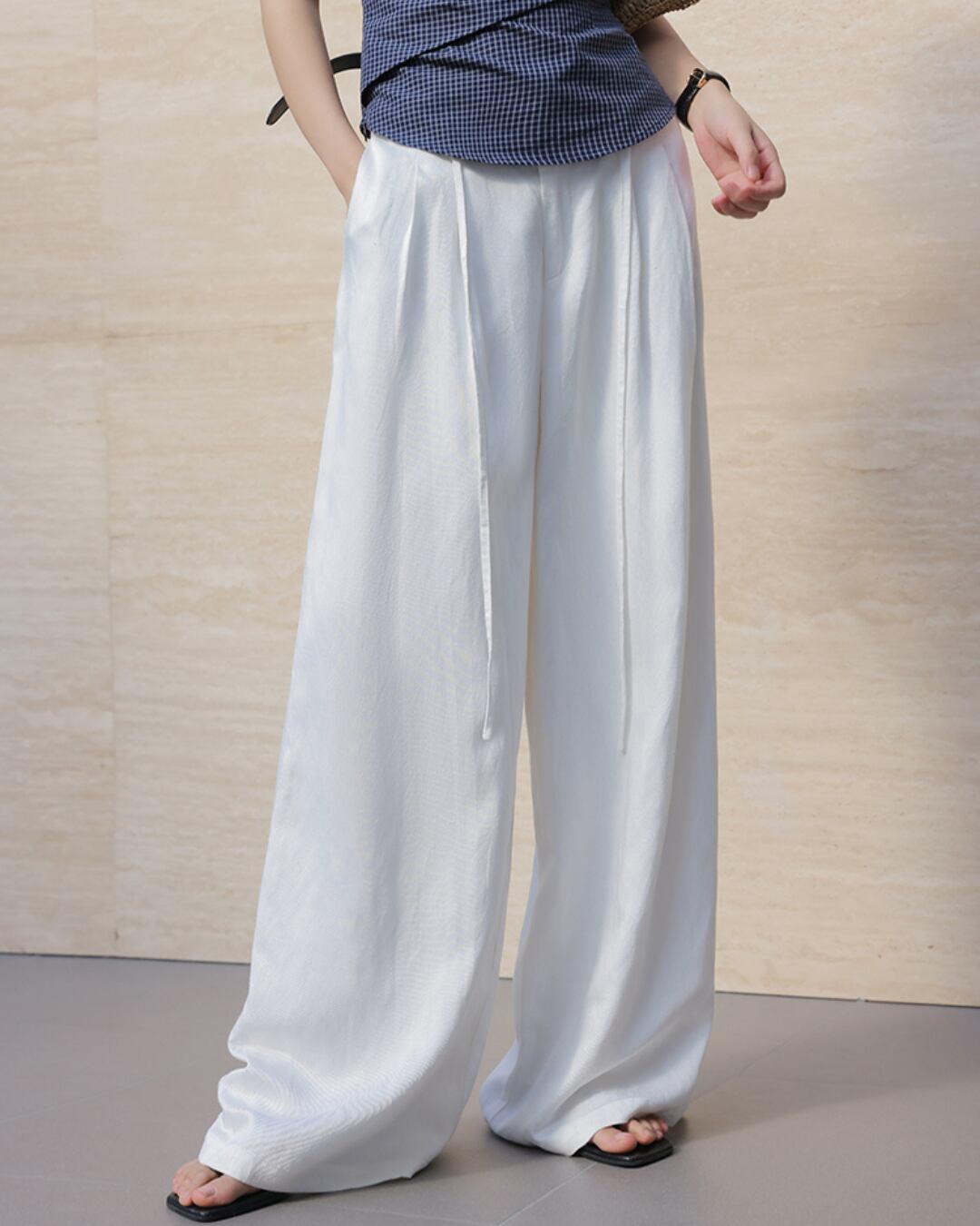 #リネンパンツ #ワイドパンツ #アイボリーボトム #タックパンツ #リラックススタイル #夏コーデ