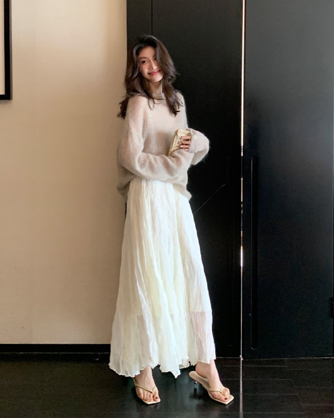 #プリーツスカート #ロングスカート #シフォン素材 #ふんわりシルエット #ナチュラルコーデ #軽やかスタイル