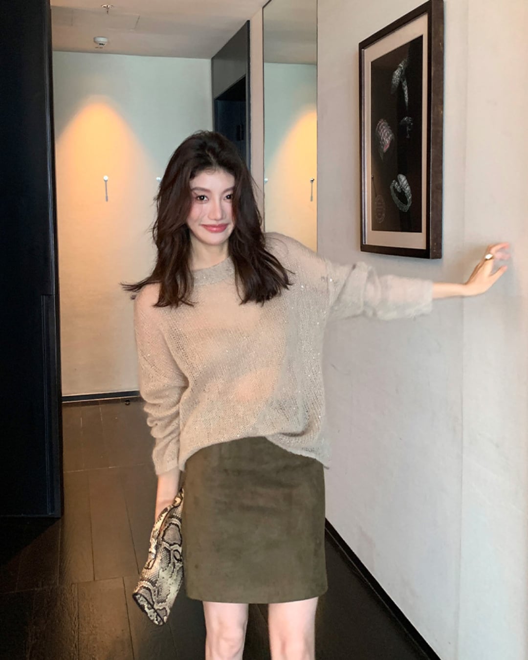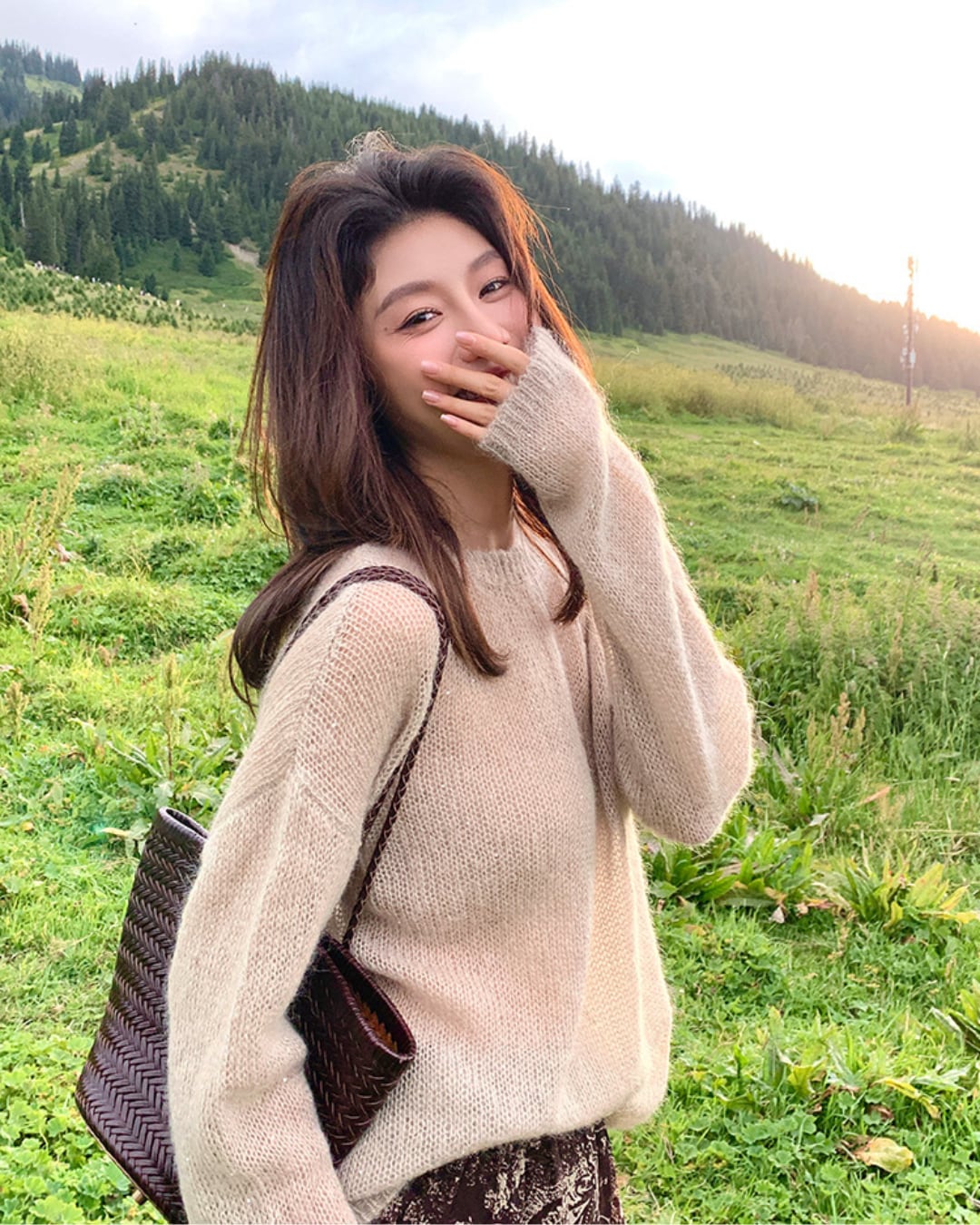 #ラメニット #フェザーヤーン #ゆるシルエット #大人カジュアル #透け感ニット #秋冬トップス #フェミニンコーデ