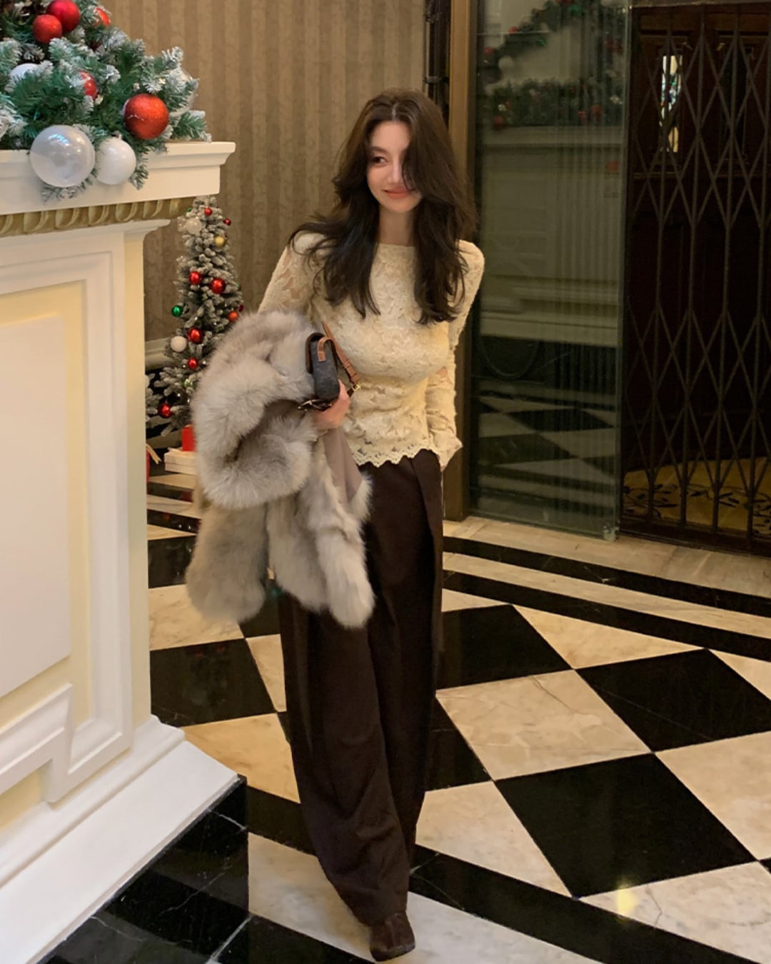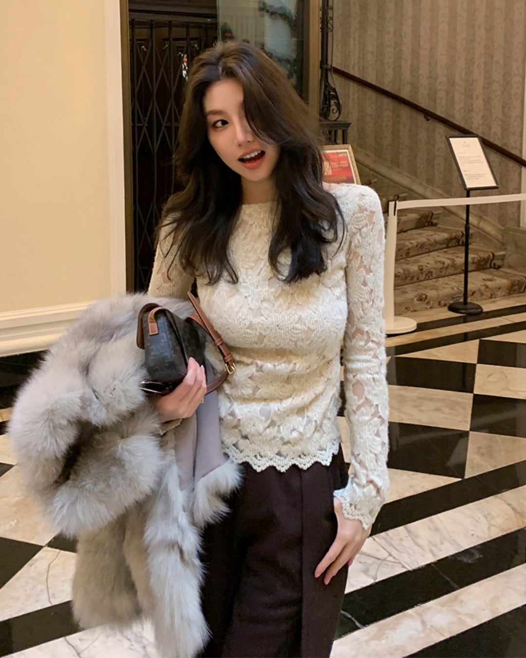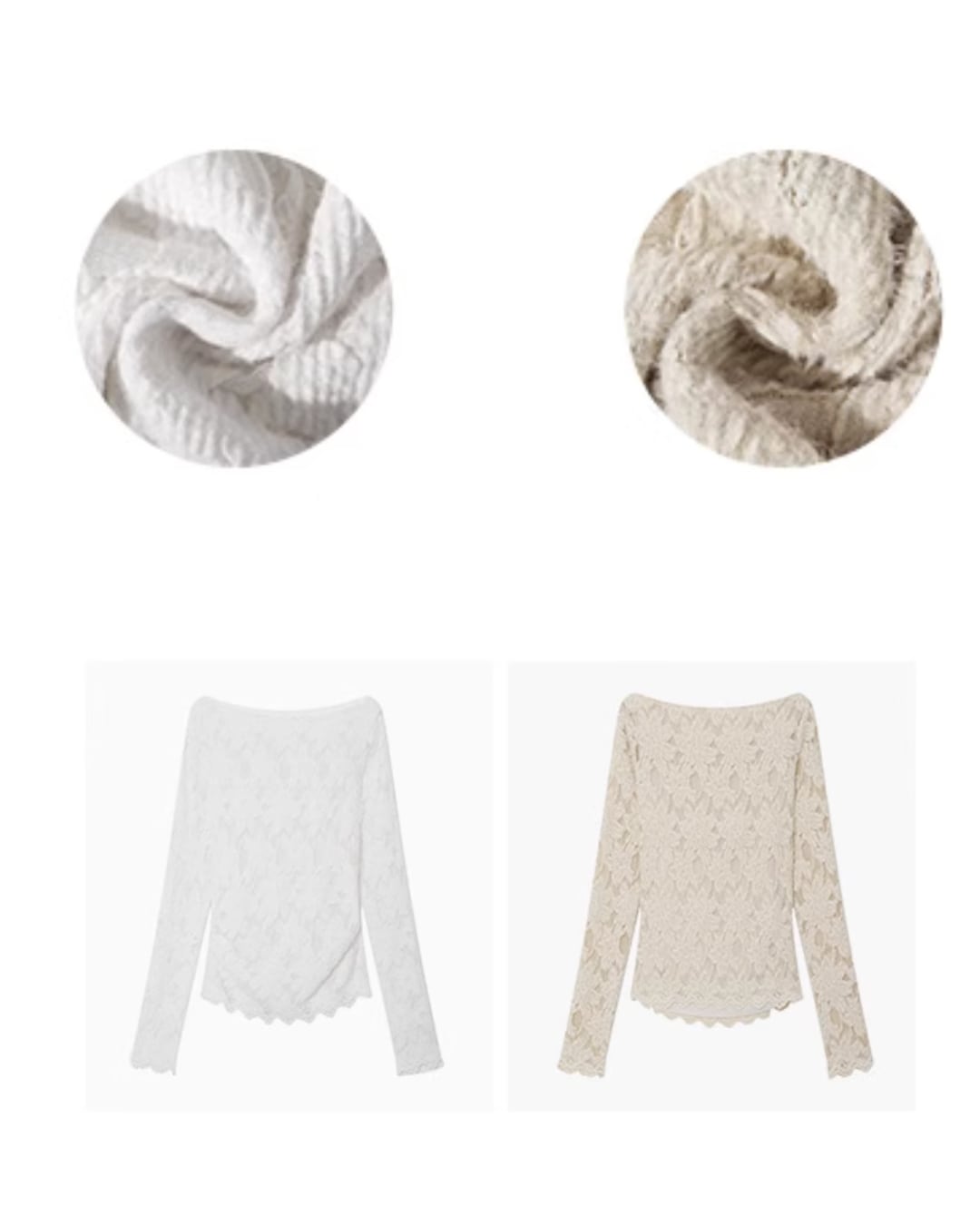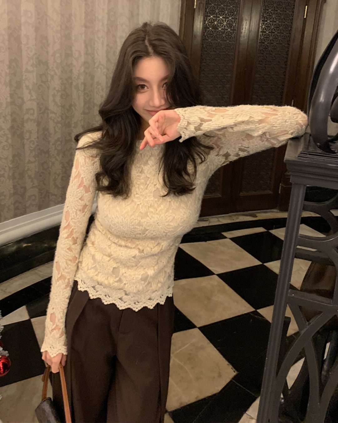 #フラワーレース #長袖トップス #フェミニンスタイル #ウエストライン #スカラップ #クラシカルコーデ #レイヤードコーデ