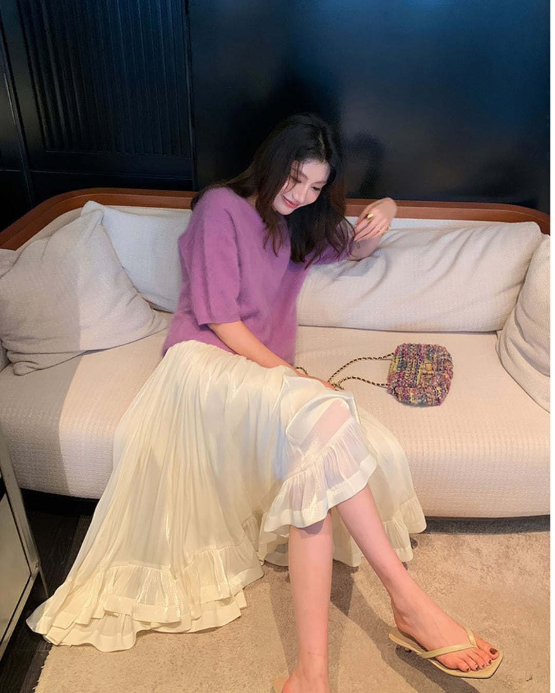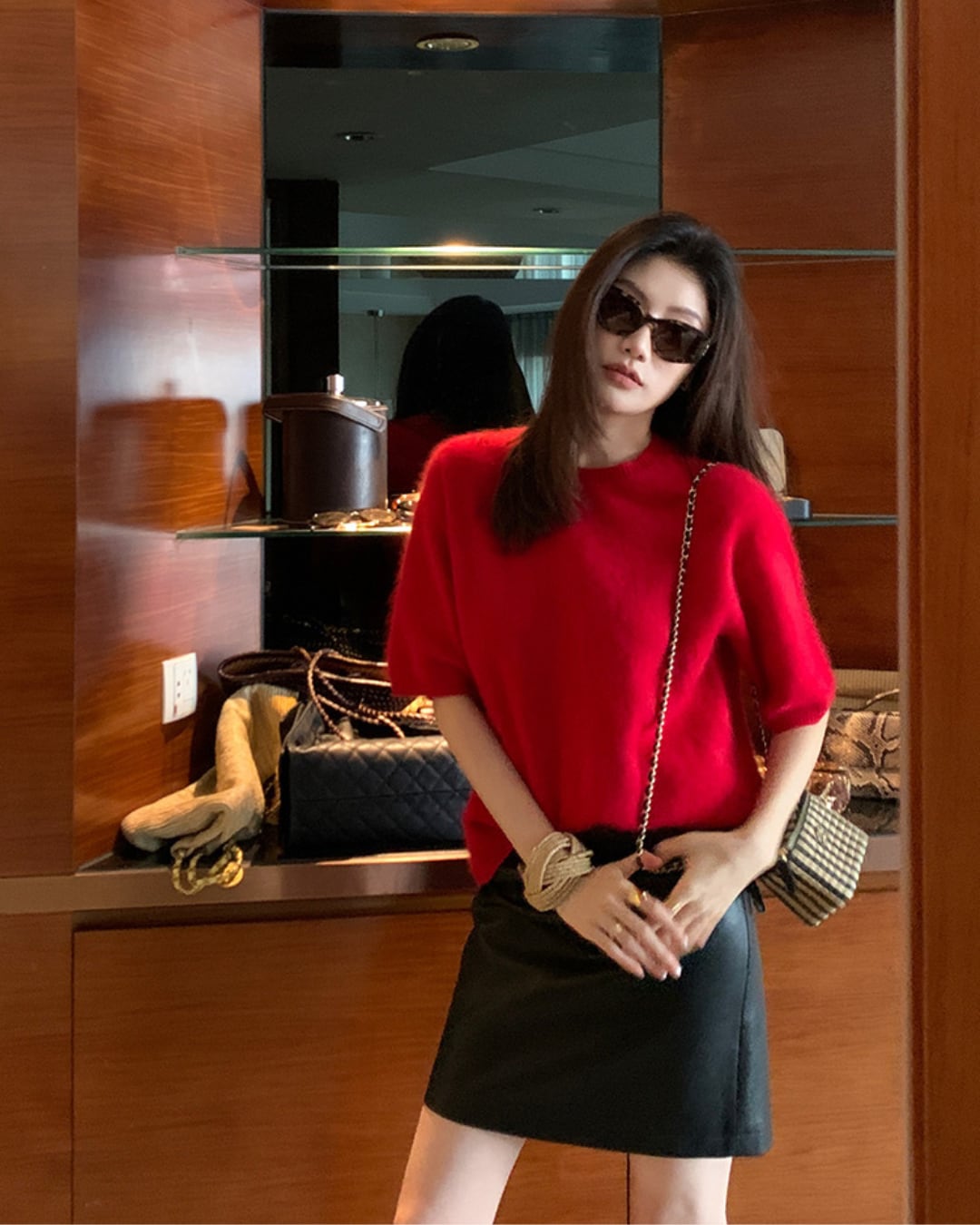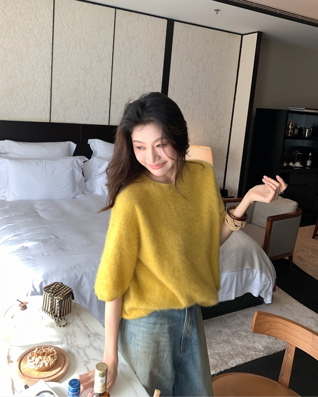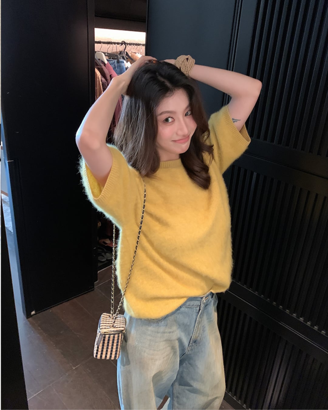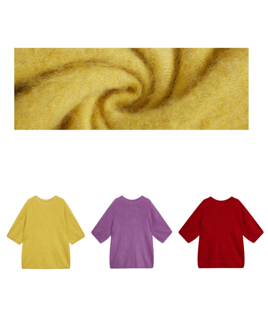 #ショートスリーブニット #半袖ニット #ふんわり素材 #柔らかニット #ドロップショルダー #春秋トップス #体型カバー