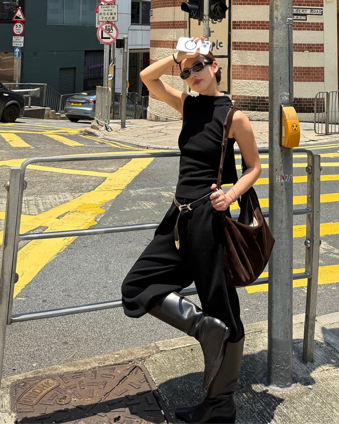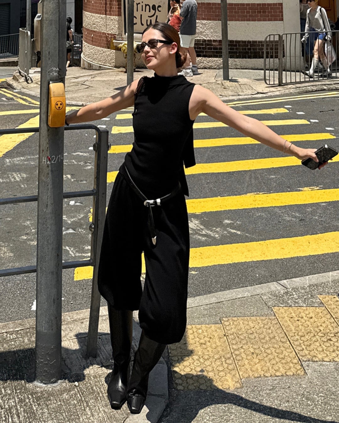 #ハイネックトップス #セットアップコーデ #秋の黒コーデ #リブニット #大人カジュアル #シンプルスタイル