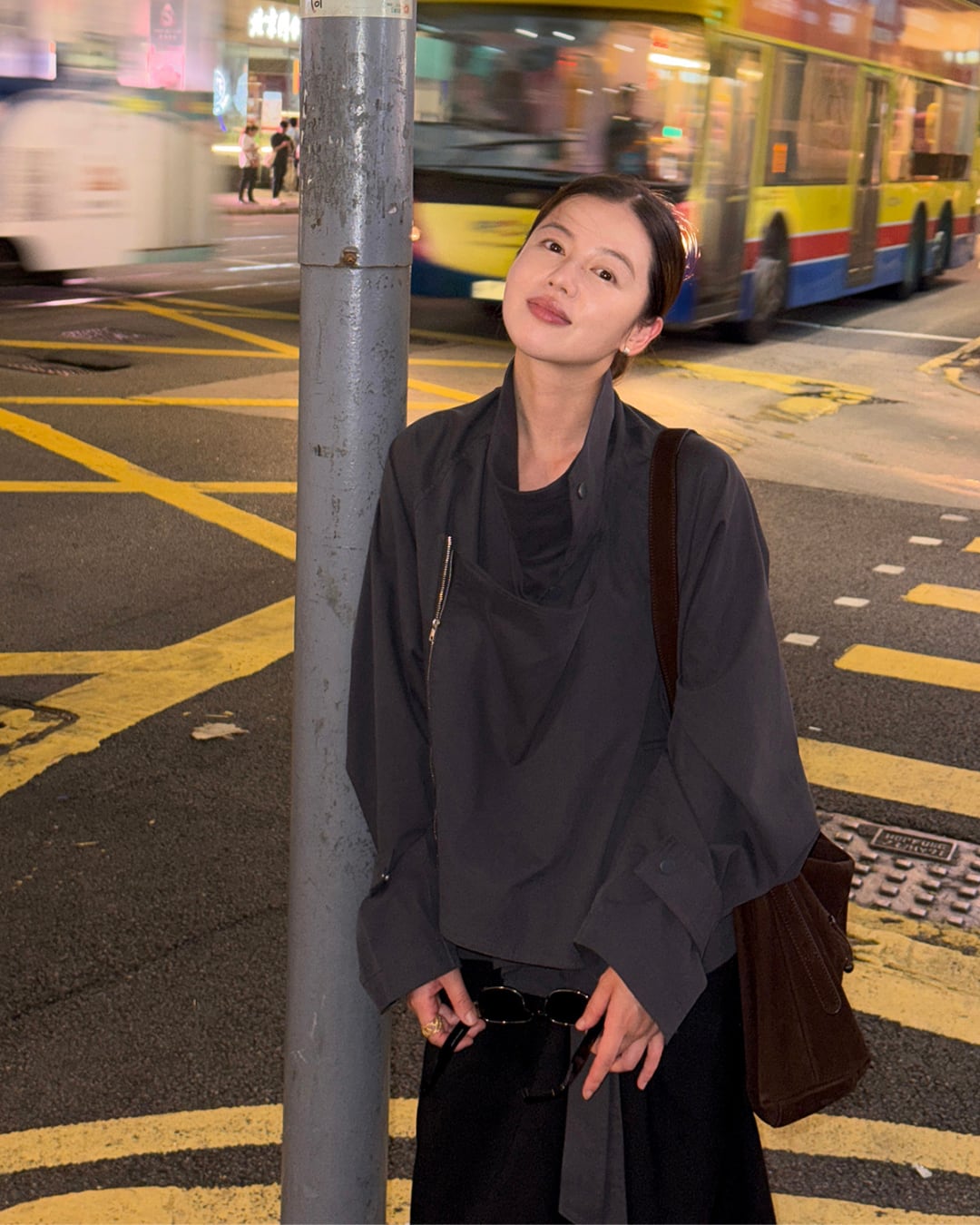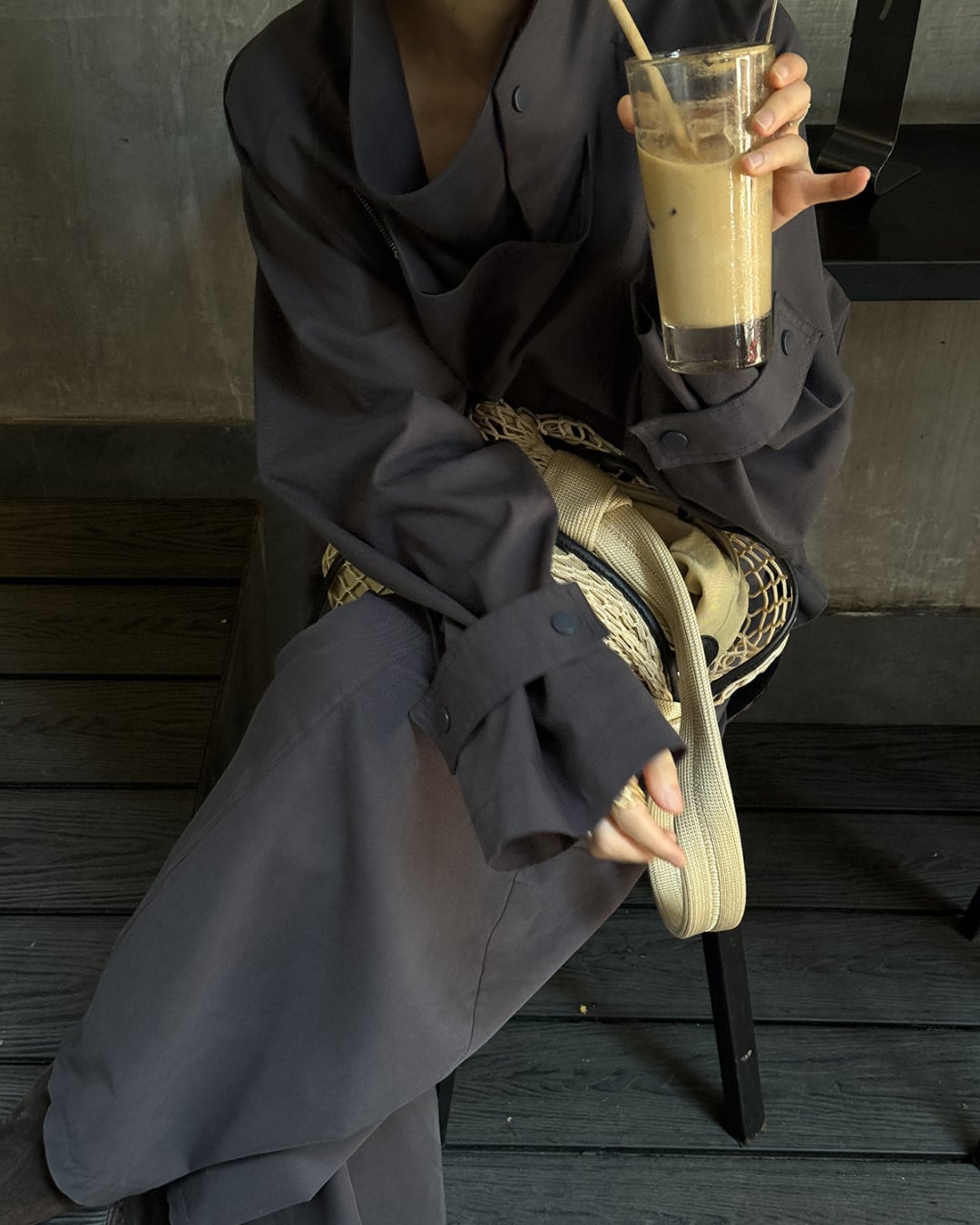 #ショートジャケット #ハイネック #コットン100 #ダブルボタン #モードカジュアル #オーバーサイズ #ライトアウター