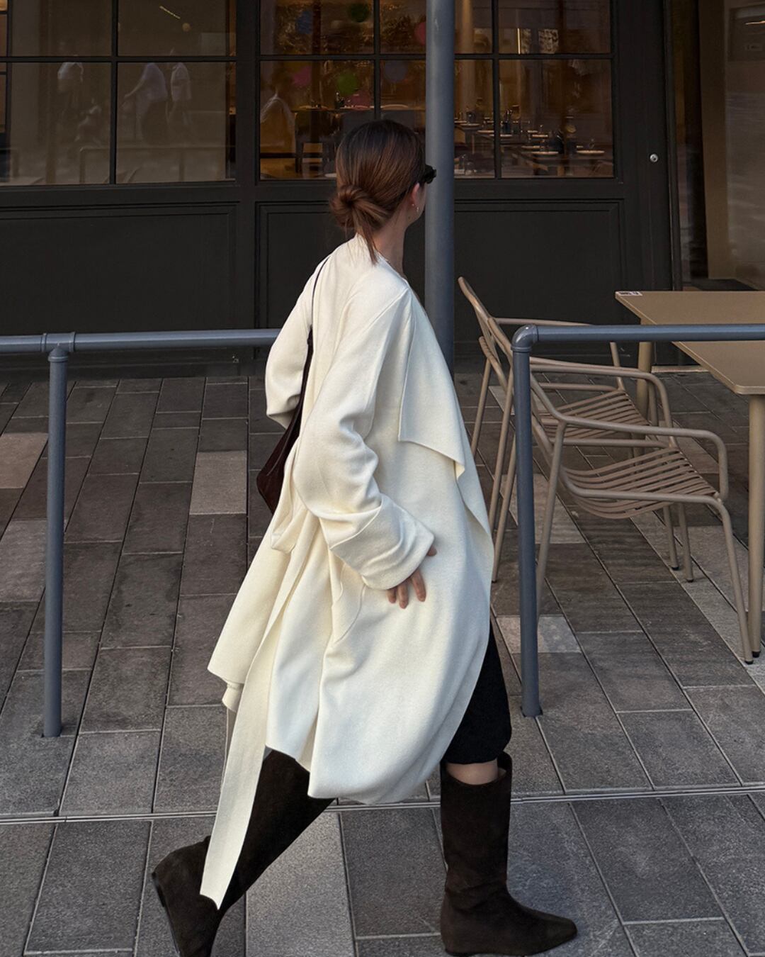 リラックス感と美しさを兼ね備えたウール混のロングカーディガン。ドロップショルダーとゆったりシルエットが抜け感を演出。動きのあるロングベルトややわらかな編地が大人のこなれたスタイルに仕上げてくれる一着。羽織るだけで季節感が高まる、秋の定番アイテムです。