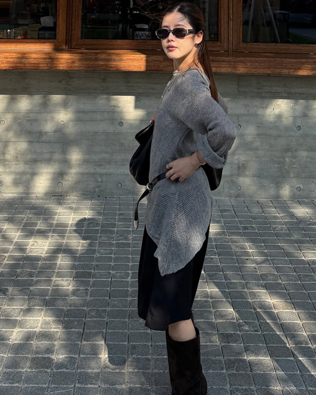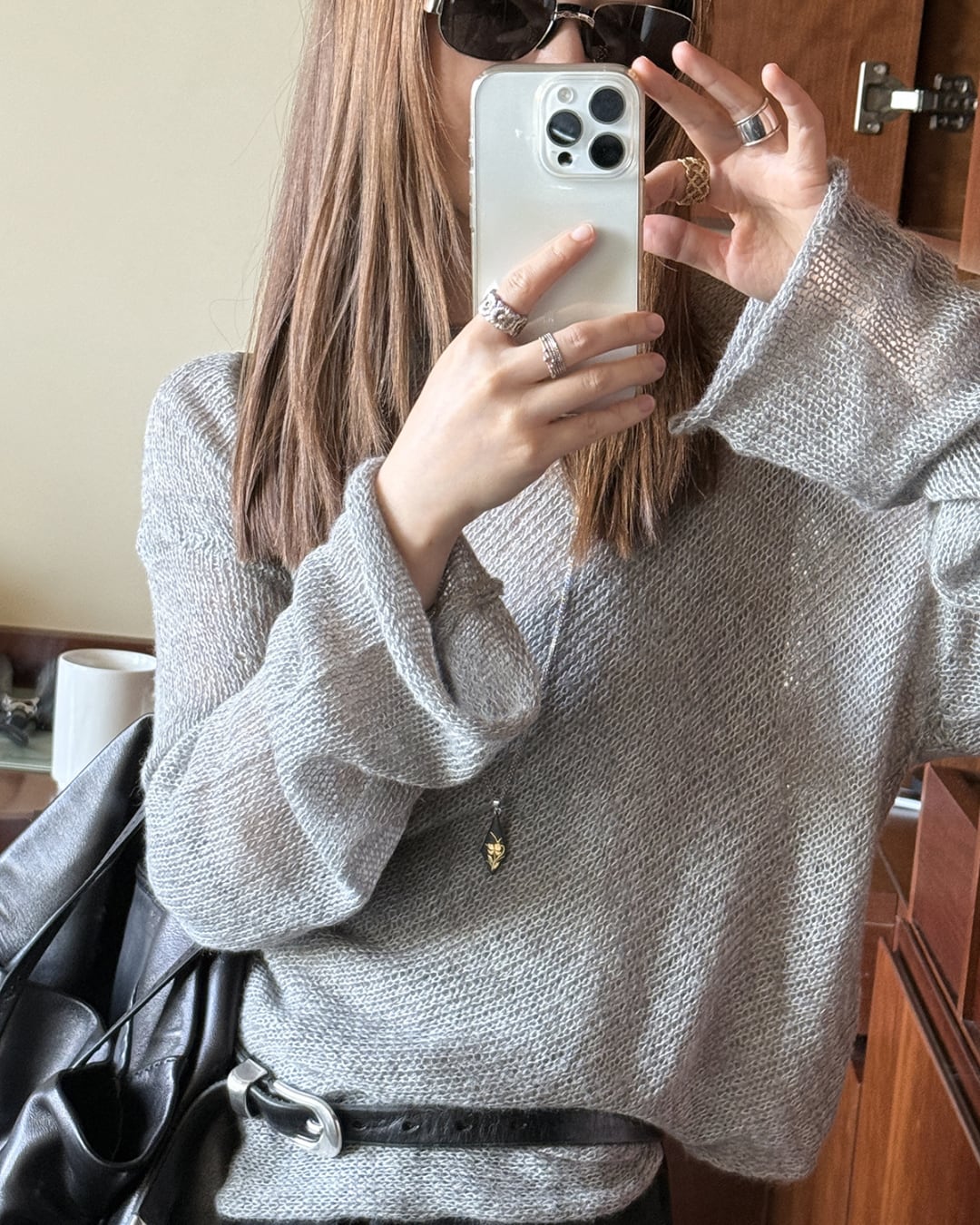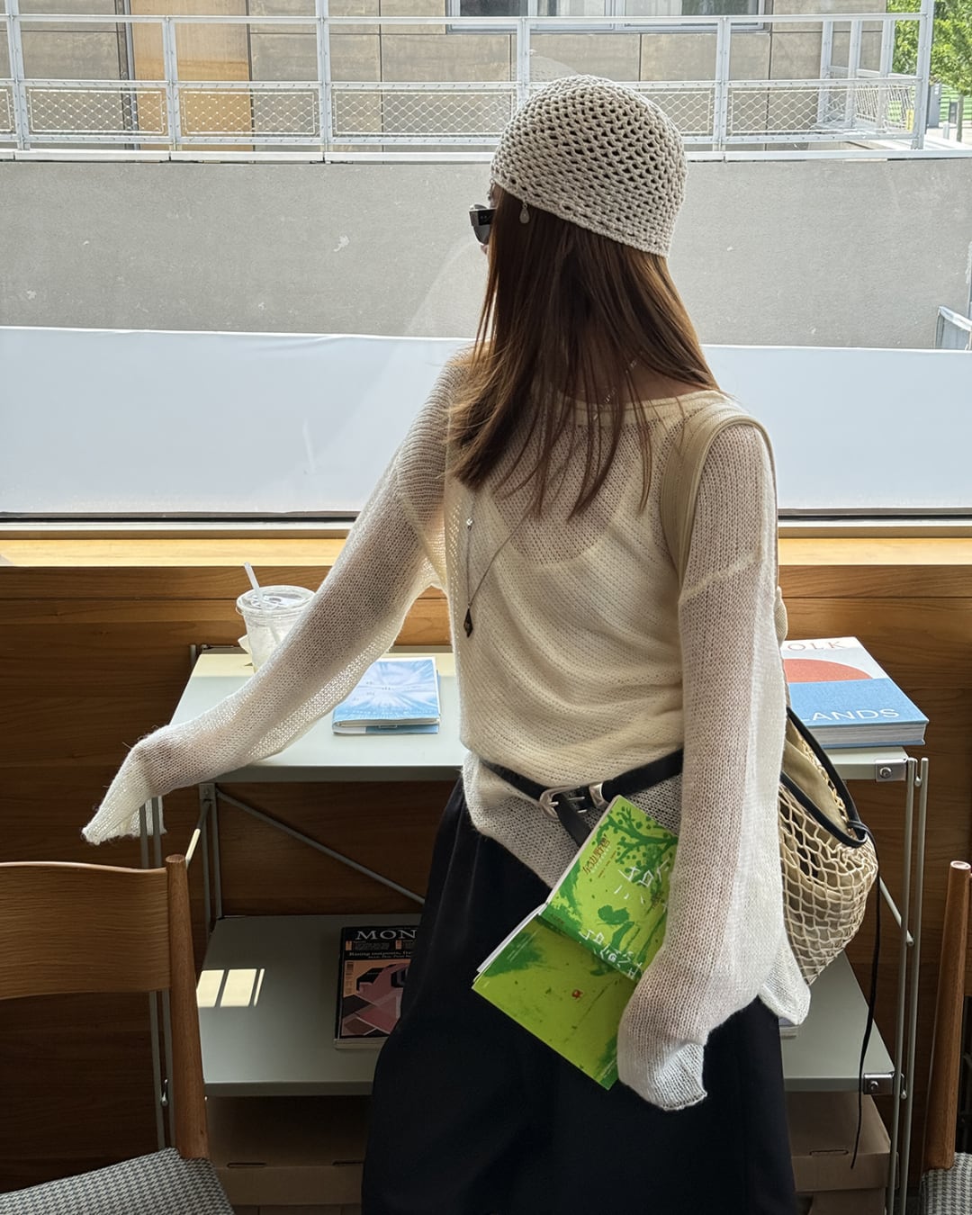 #モヘアニット #ニットセット #レイヤードコーデ #秋スタイル #透け感ニット #大人カジュアル #セットアップ