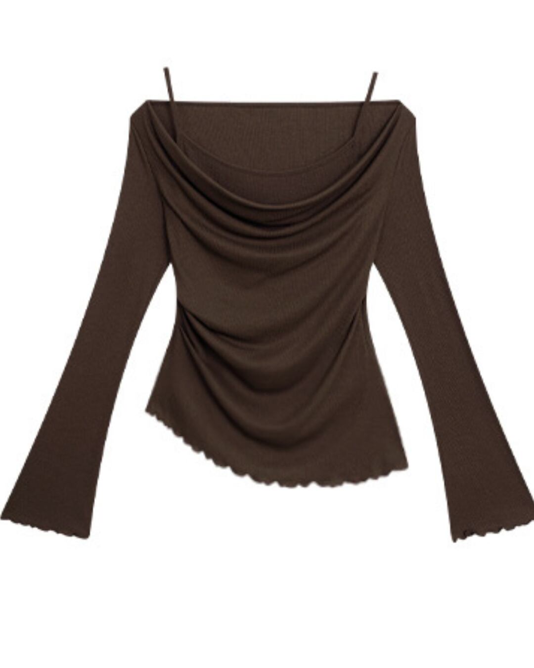 #オフショルダー #ドレープデザイン #細身シルエット #フェミニン #大人カジュアル #長袖トップス