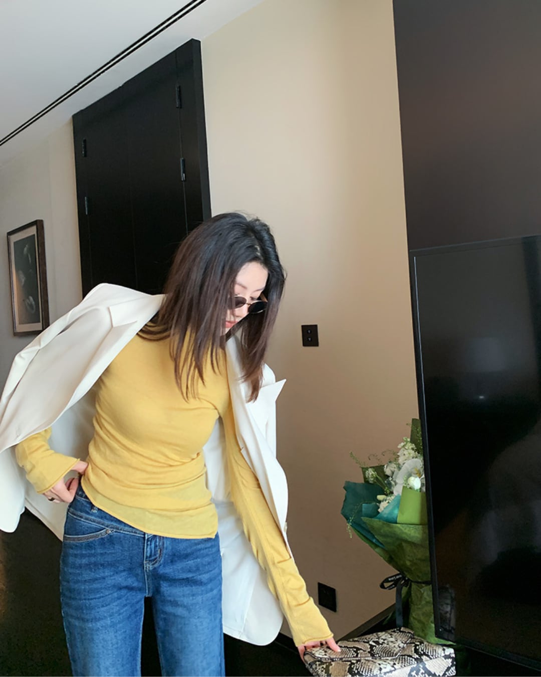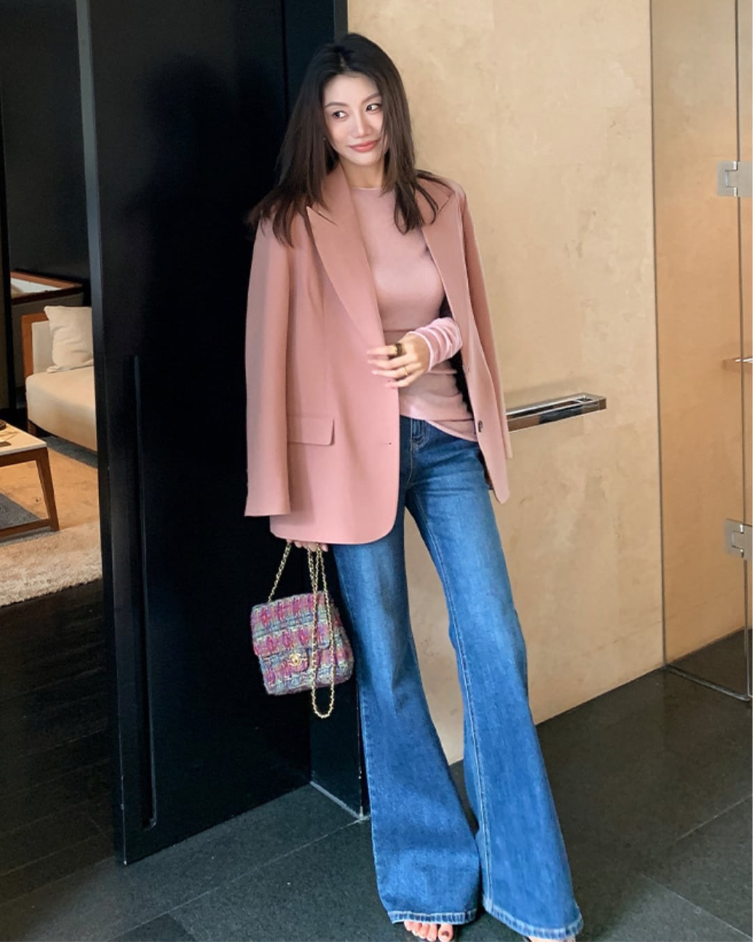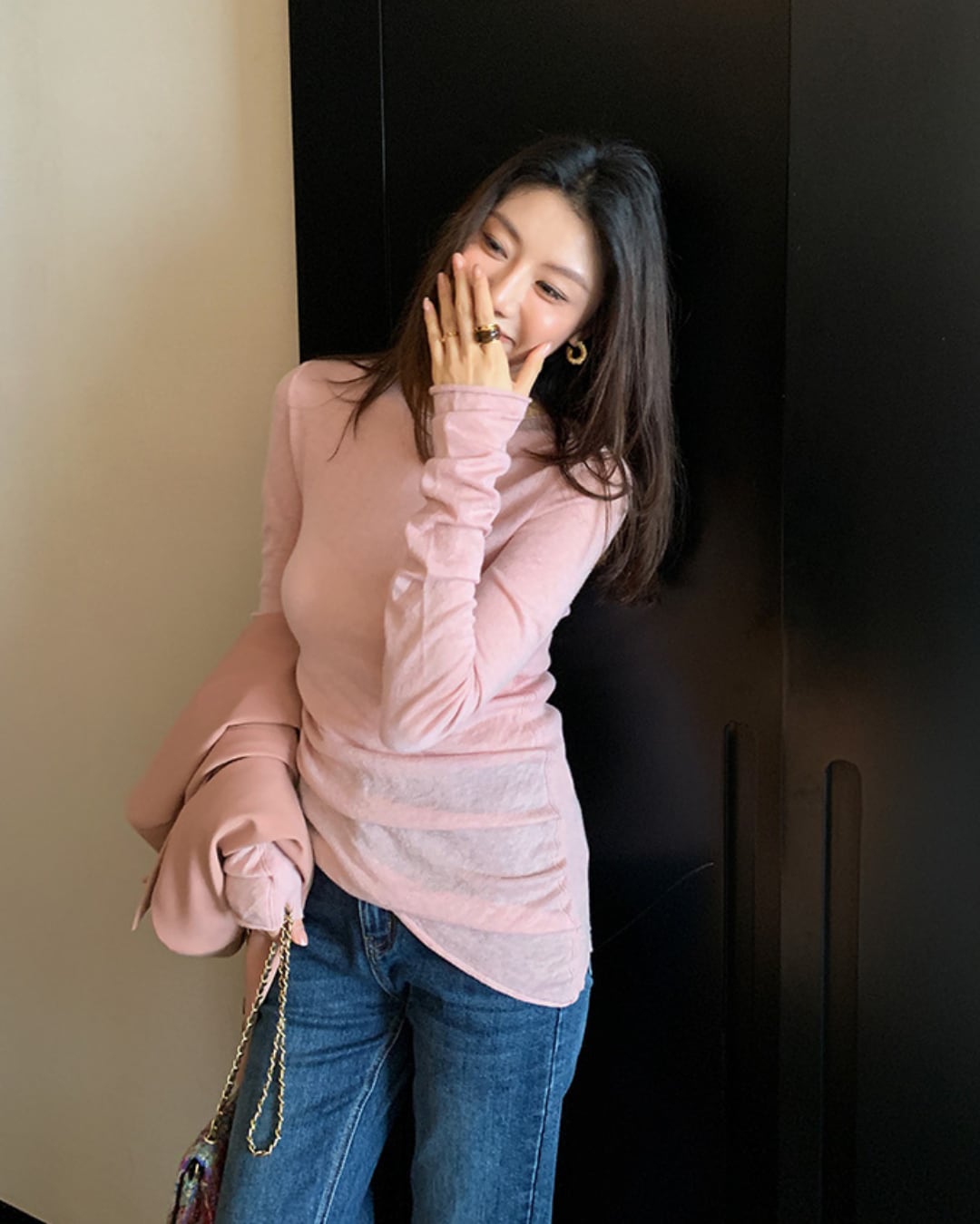 #クルーネック #カシミヤ混 #ニットトップス #柔らか素材 #秋冬コーデ #フェミニンスタイル