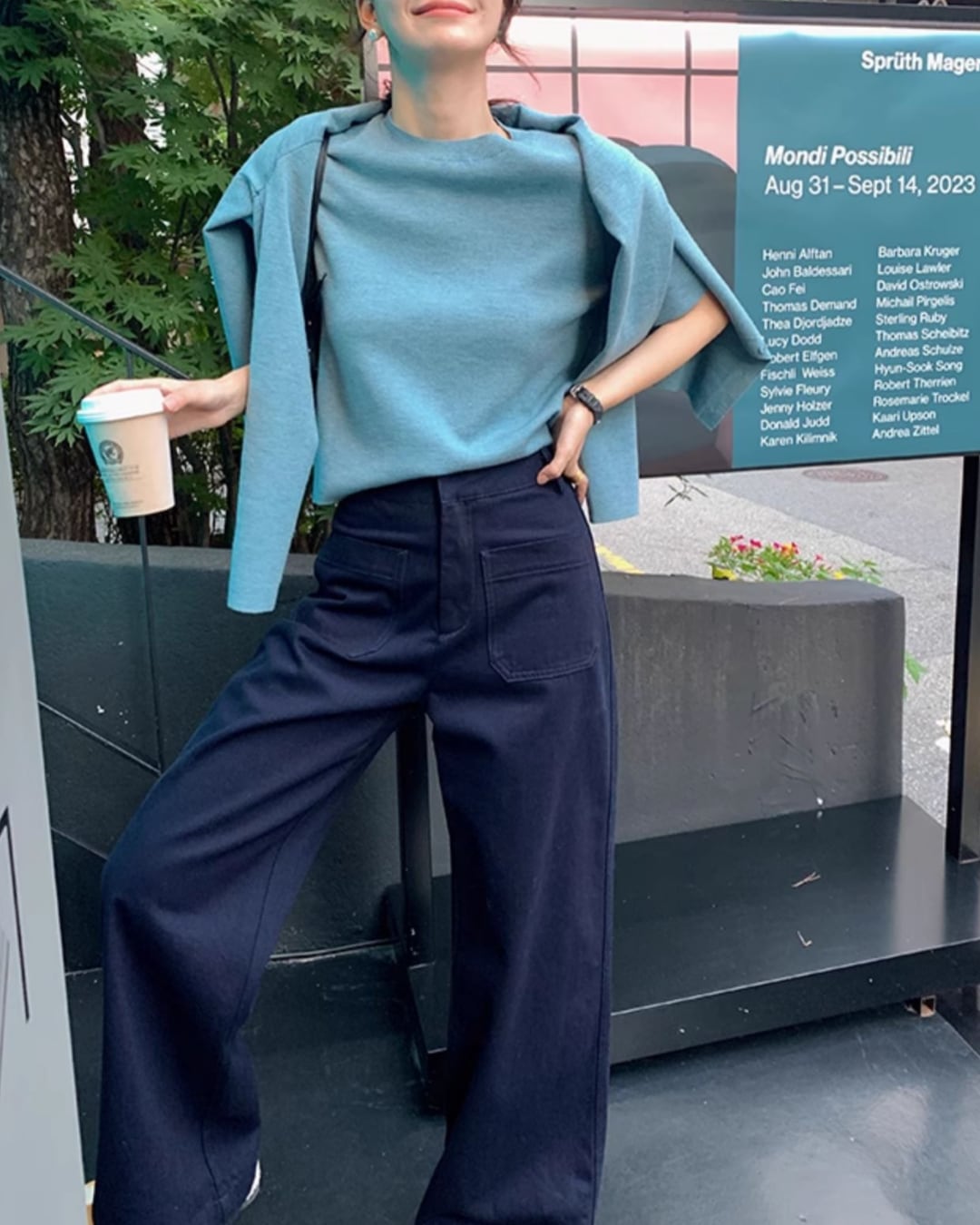 #ウールニット #カーディガン #セットアップ #ドウブルー #上品カジュアル #秋コーデ