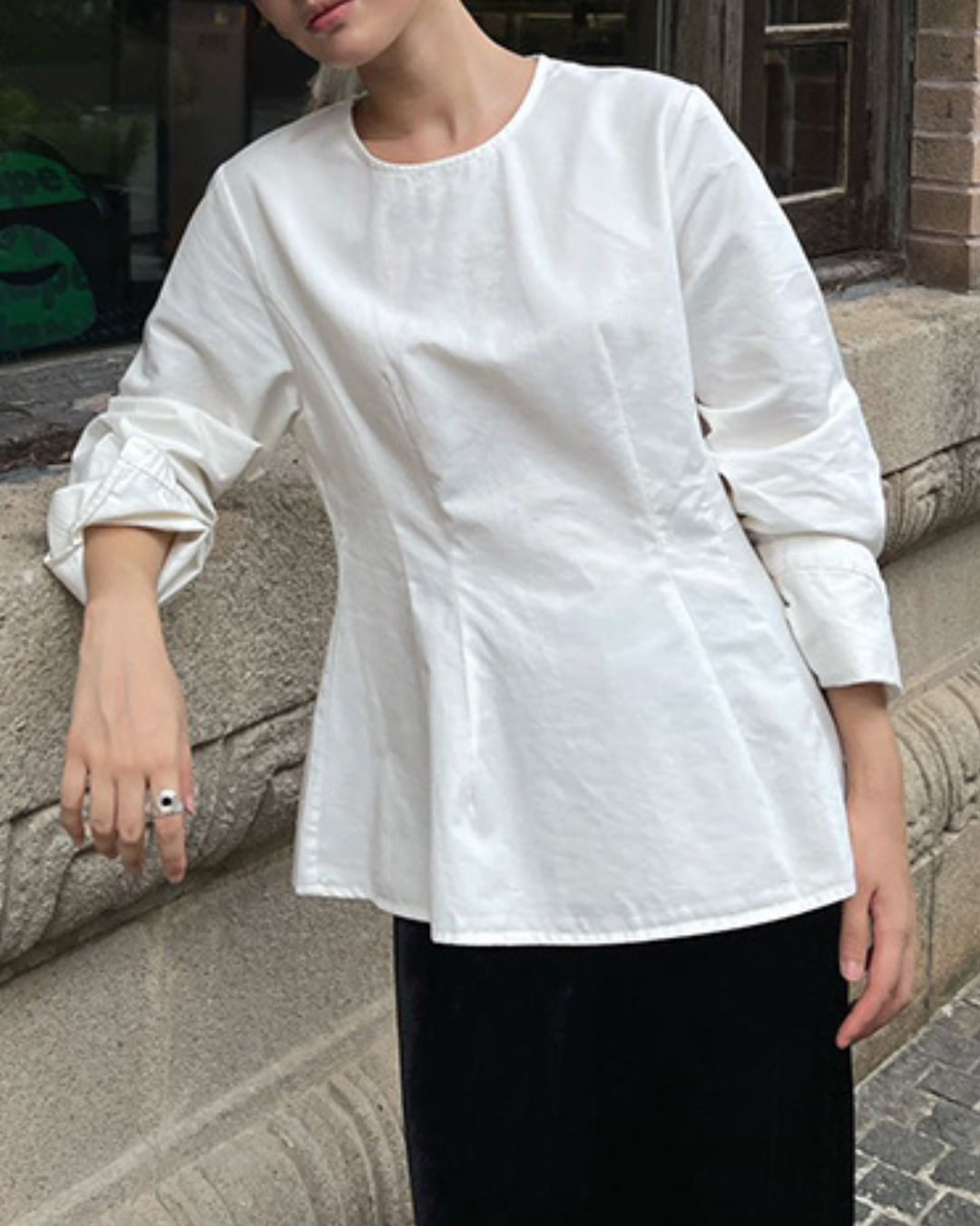 #ホワイトトップス #ラウンドネック #コットントップス #秋トップス #シンプルコーデ #長袖トップス #大人カジュアル
