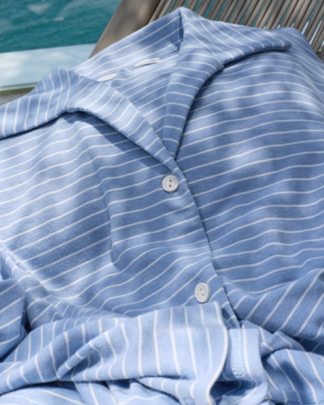 大人の可愛さとリラックス感を兼ね備えた、ストライプ柄のルームウェア3点セット。シャツ・キャミソール・パンツがセットになっており、気温や気分に合わせて着回し自在。さらっとした肌ざわりでストレスフリーな着心地。朝の身支度や夜のリラックスタイムも、スタイルよく過ごせます。