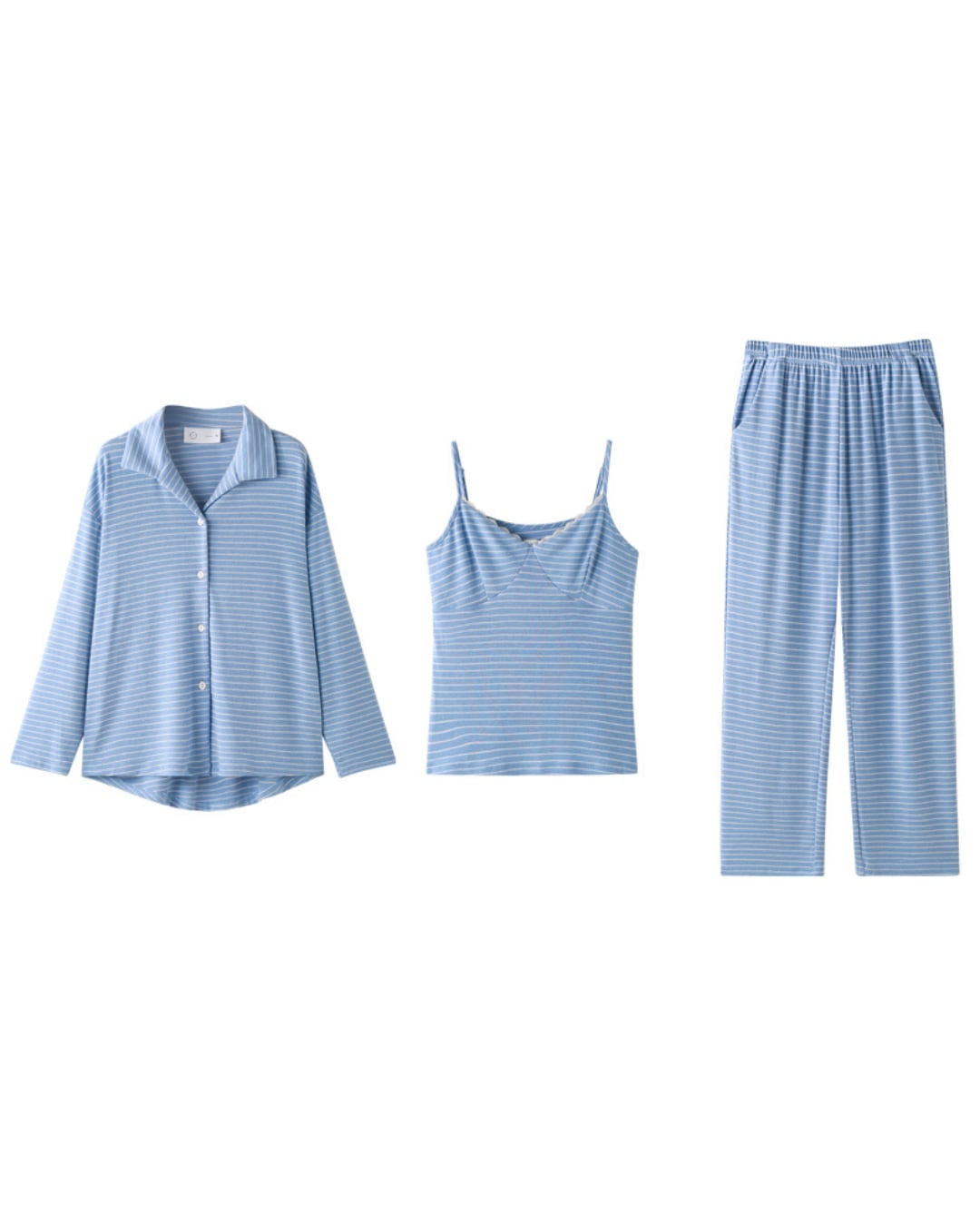 #ストライプ #3点セット #ルームウェア #キャミ付き #ブルーコーデ #リラックスコーデ #大人可愛い