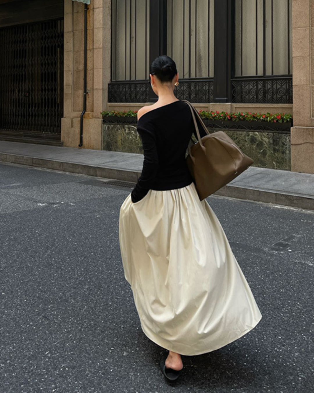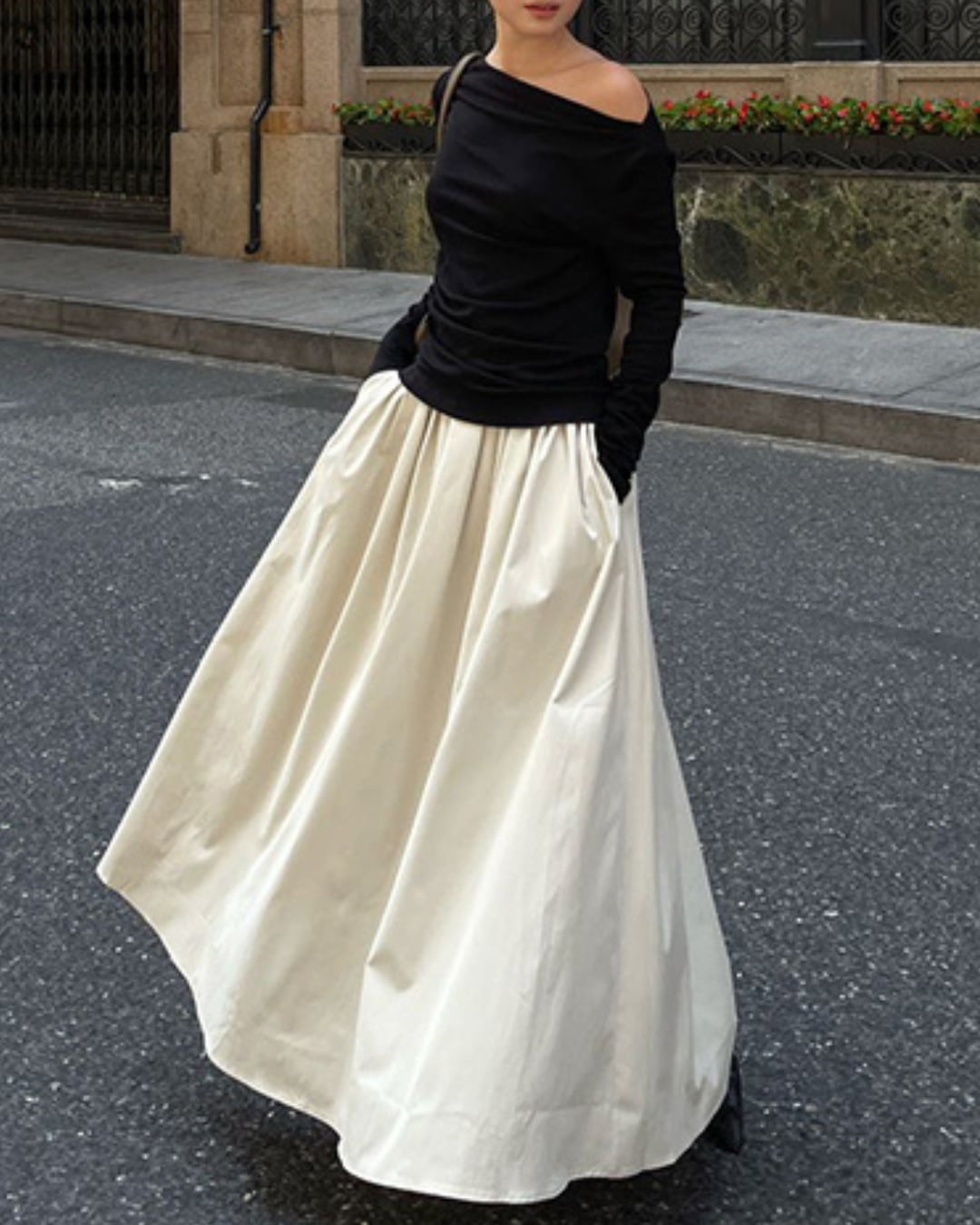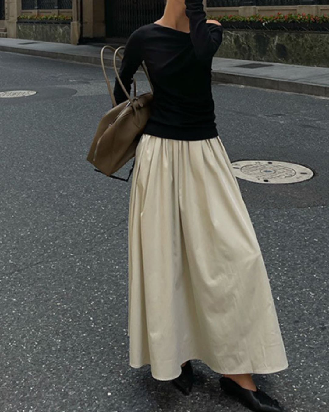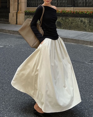 #ギャザー #フレアスカート #Aライン #ロングスカート #アイボリーコーデ #オフショル合わせ