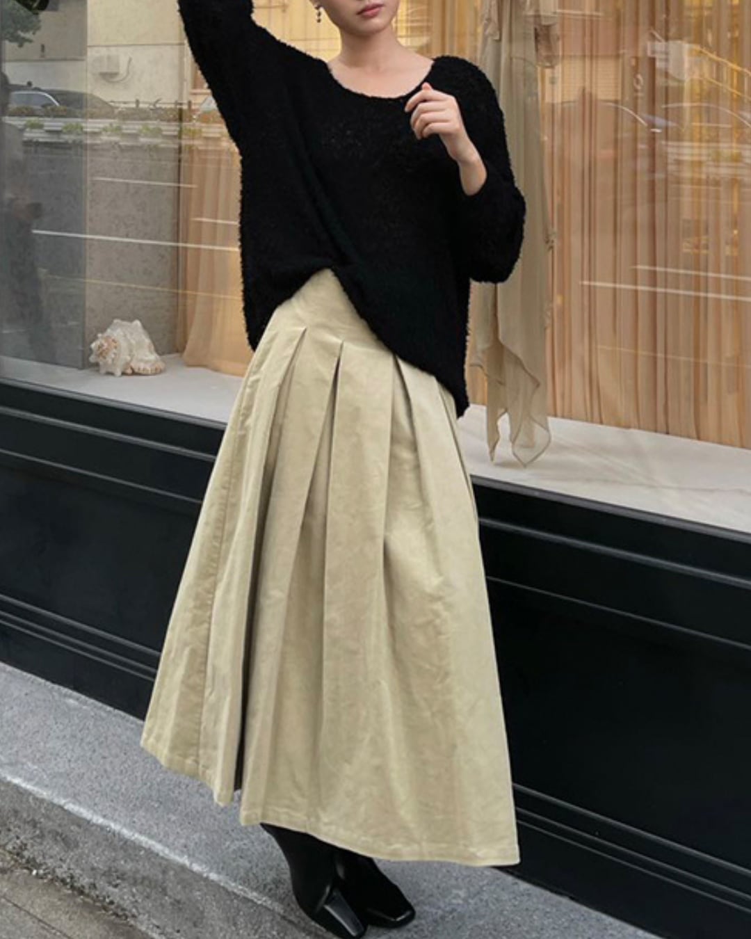 柔らかく軽やかな肌ざわりで、着心地抜群のルーズフィットニット。クルーネックとシンプルなデザインが大人の抜け感を演出し、スカートにもパンツにも合わせやすい万能トップスです。