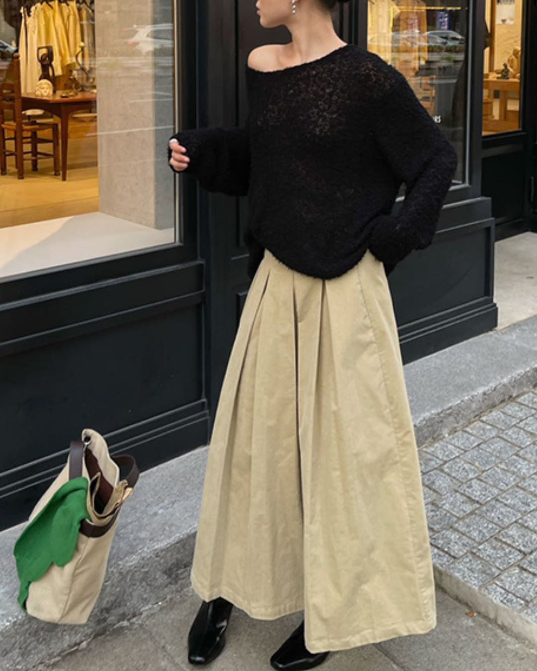 #ルーズシルエット #クルーネック #ブラックコーデ #長袖ニット #抜け感トップス #秋冬ニット