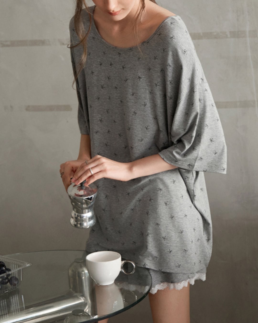 #ルームウェア #レース #リボンデザイン #ゆったりシルエット #グレーコーデ #ナイトウェア