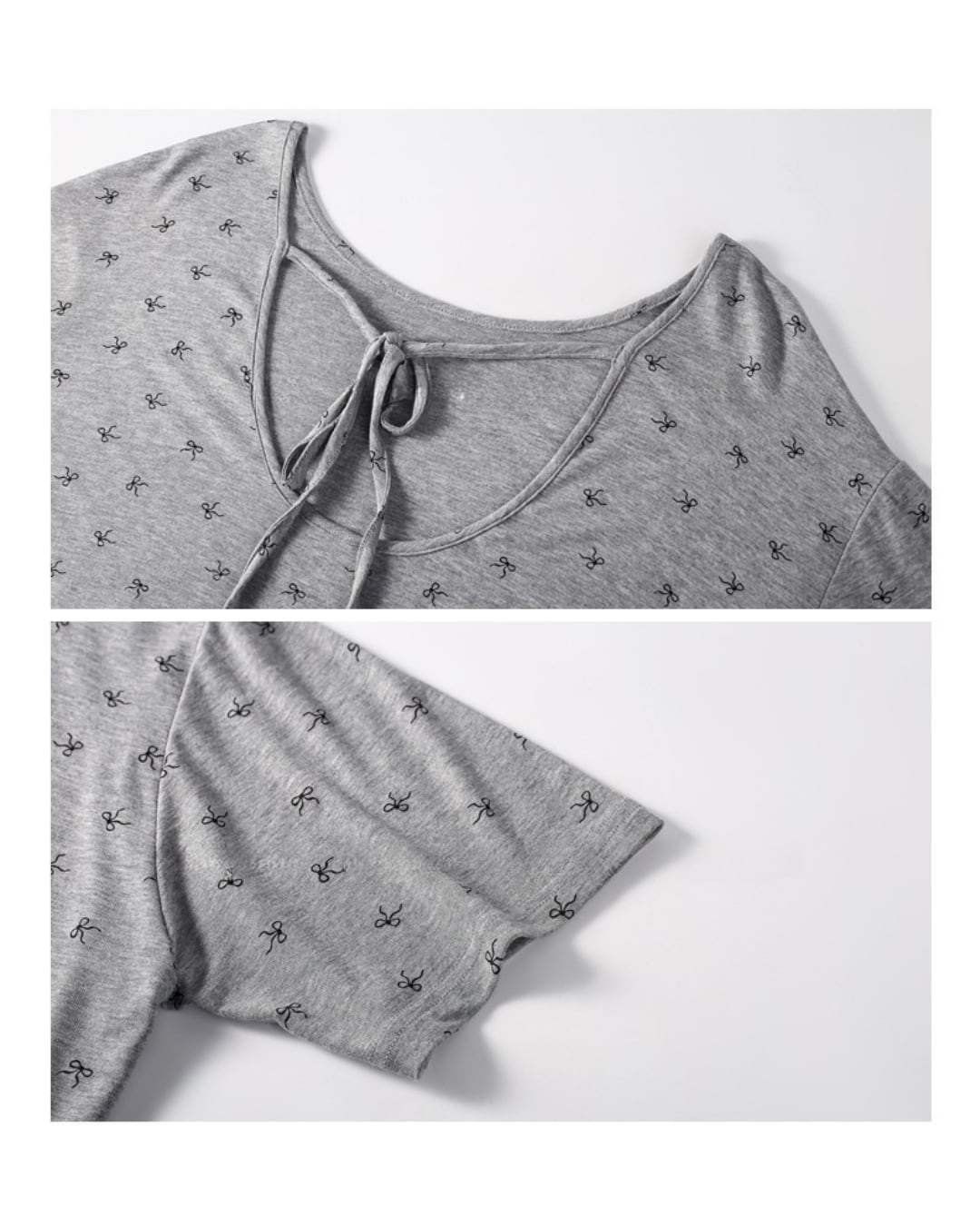 ゆったりとしたシルエットでリラックス感のあるルームウェアセット。トップスは背中のリボンデザインで女性らしさを演出し、ショートパンツの裾にはレースをあしらい可愛らしさもプラス。柔らかな素材感とシンプルな小花柄が落ち着いた印象に。おうち時間をより快適に、上品に。