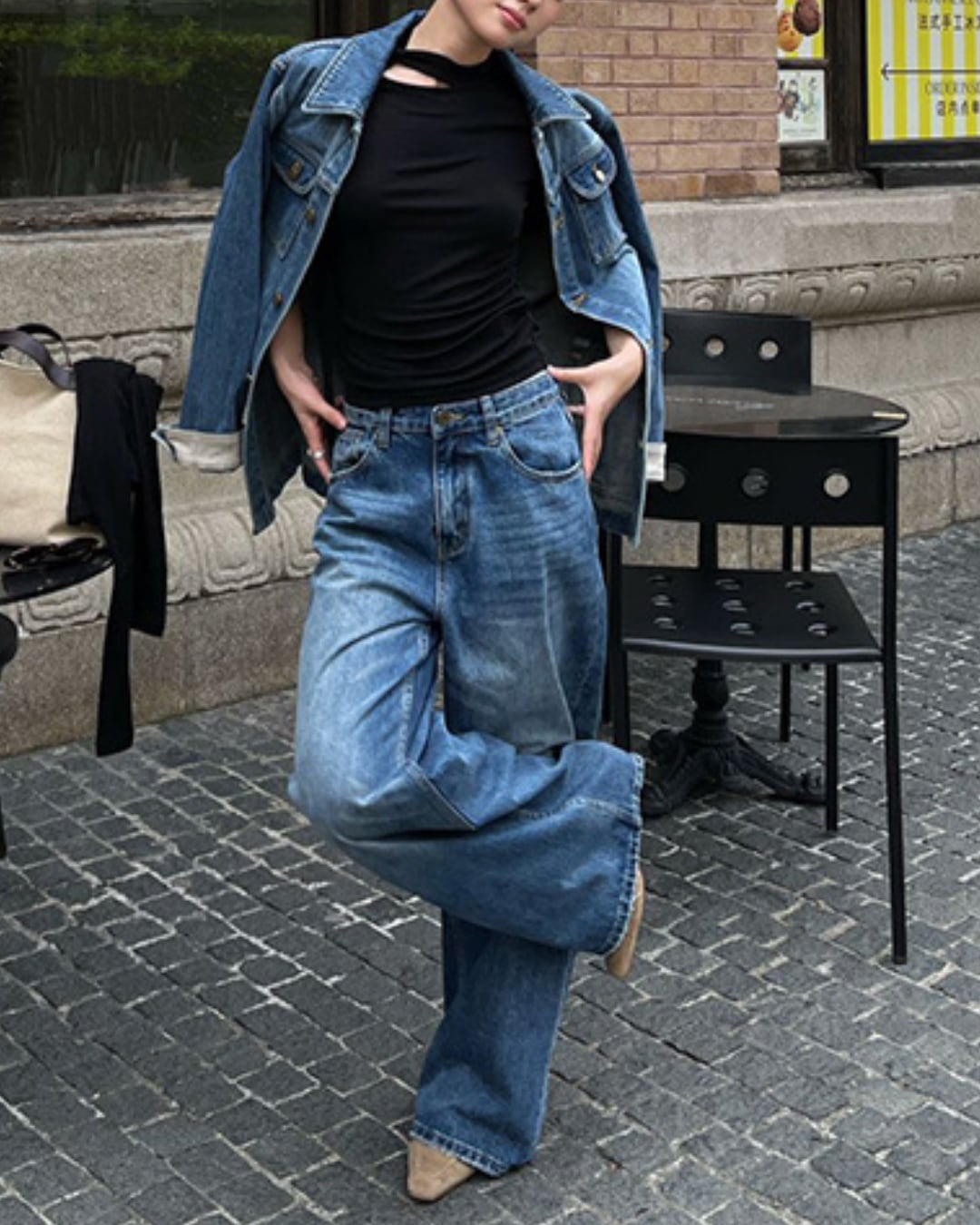 #デニムジャケット #オーバーサイズ #ブルーアウター #カジュアルコーデ #ヴィンテージ風 #レイヤードコーデ