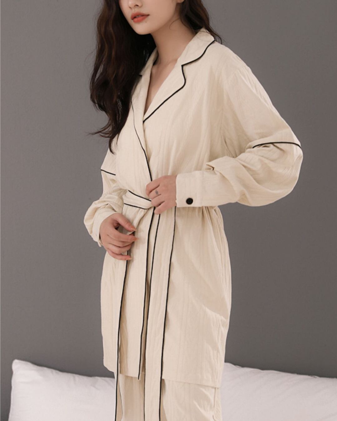 #ガーゼ素材 #パイピング #ベルト付き #ルームウェア #長袖パジャマ #ワンマイルウェア