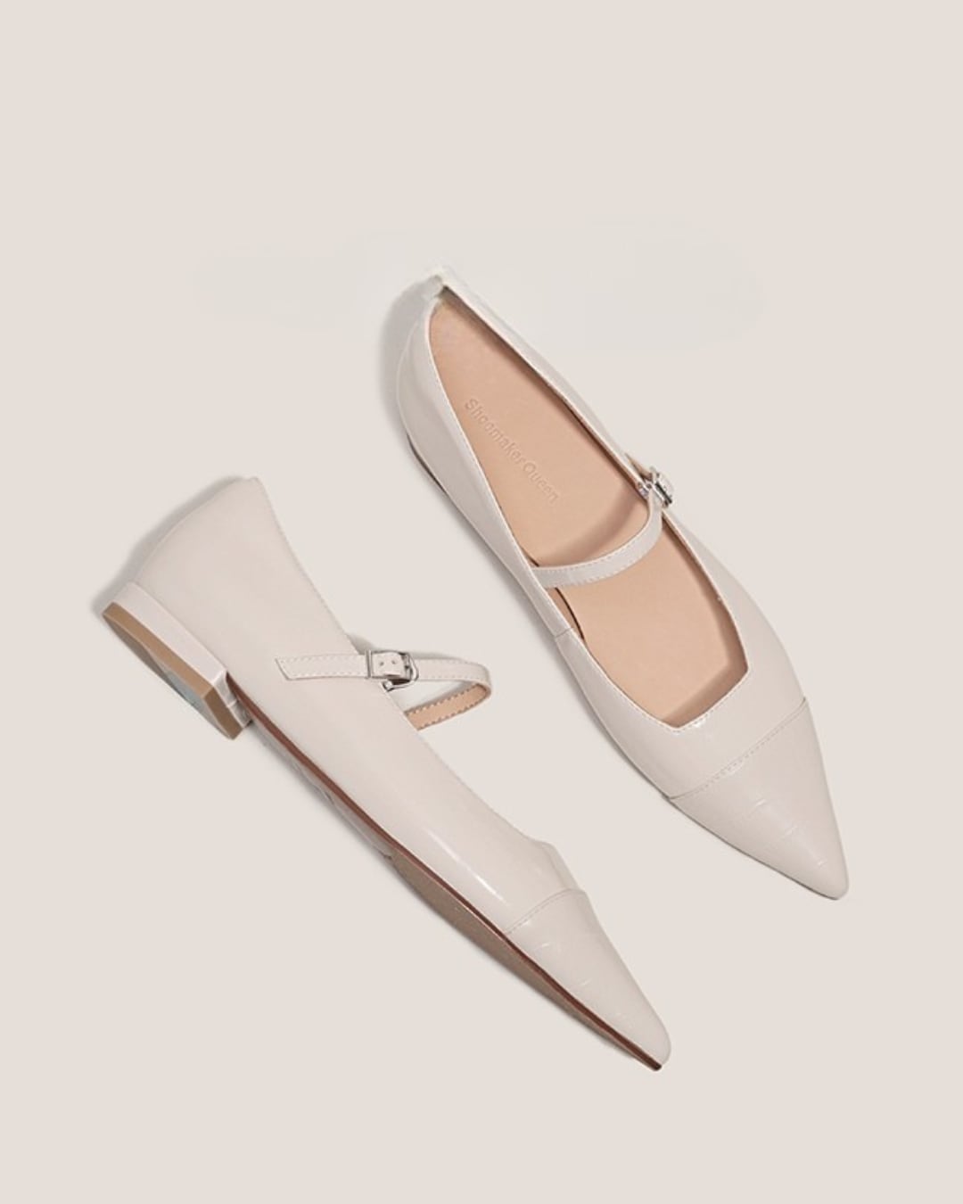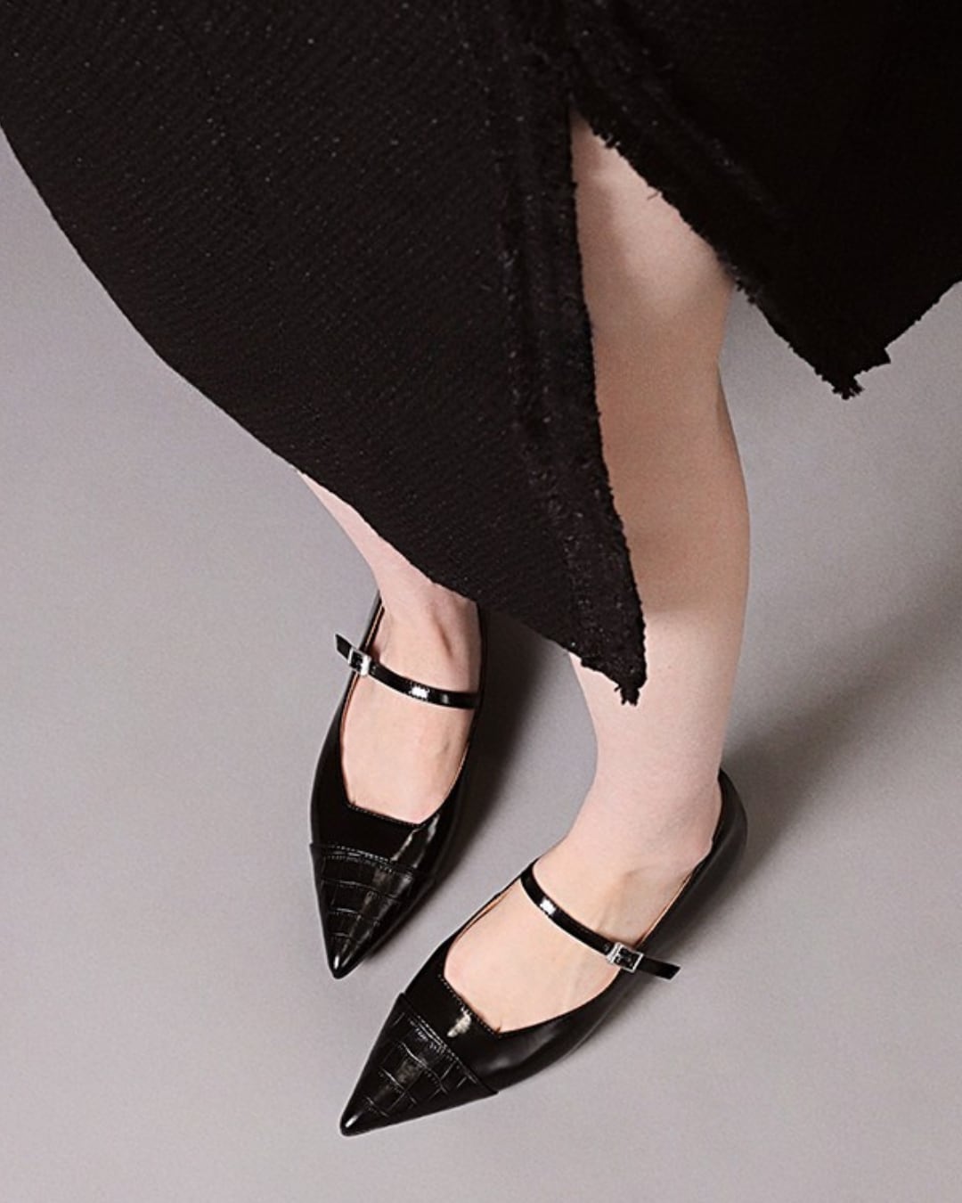 #メリージェーン #ポインテッドトゥ #牛革シューズ #クロコ型押し #クラシカルシューズ #本革インソール