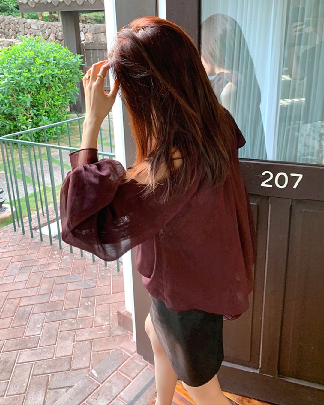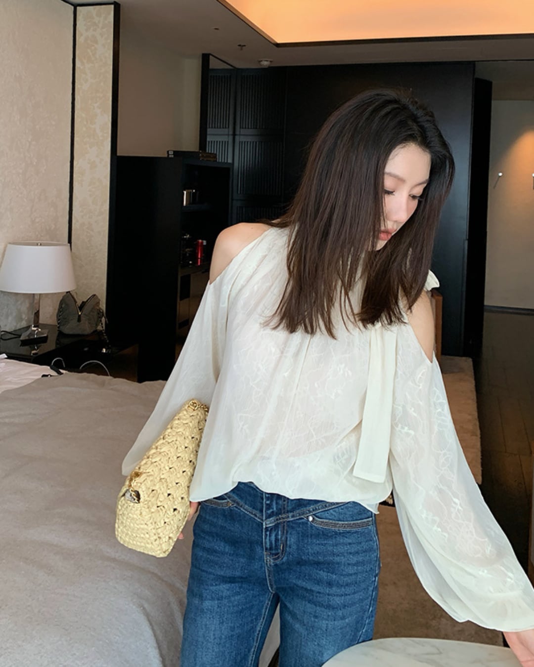 #リボンブラウス #シフォンブラウス #ボリュームスリーブ #フェミニントップス #2色展開 #大人コーデ