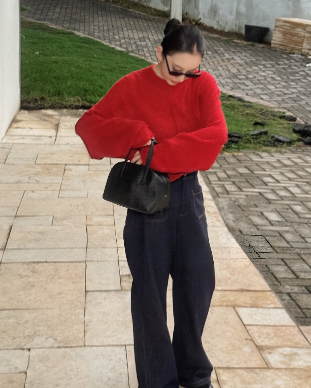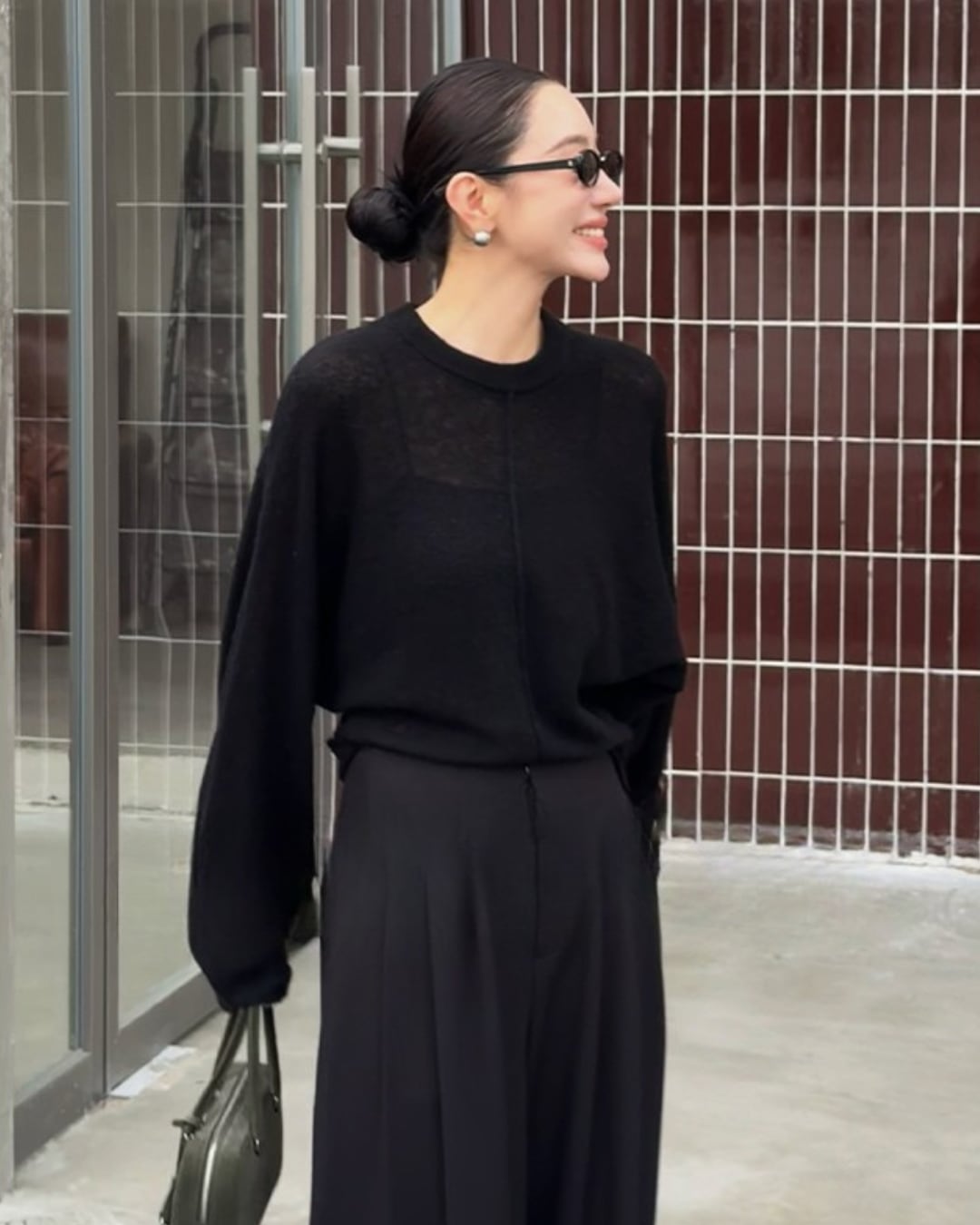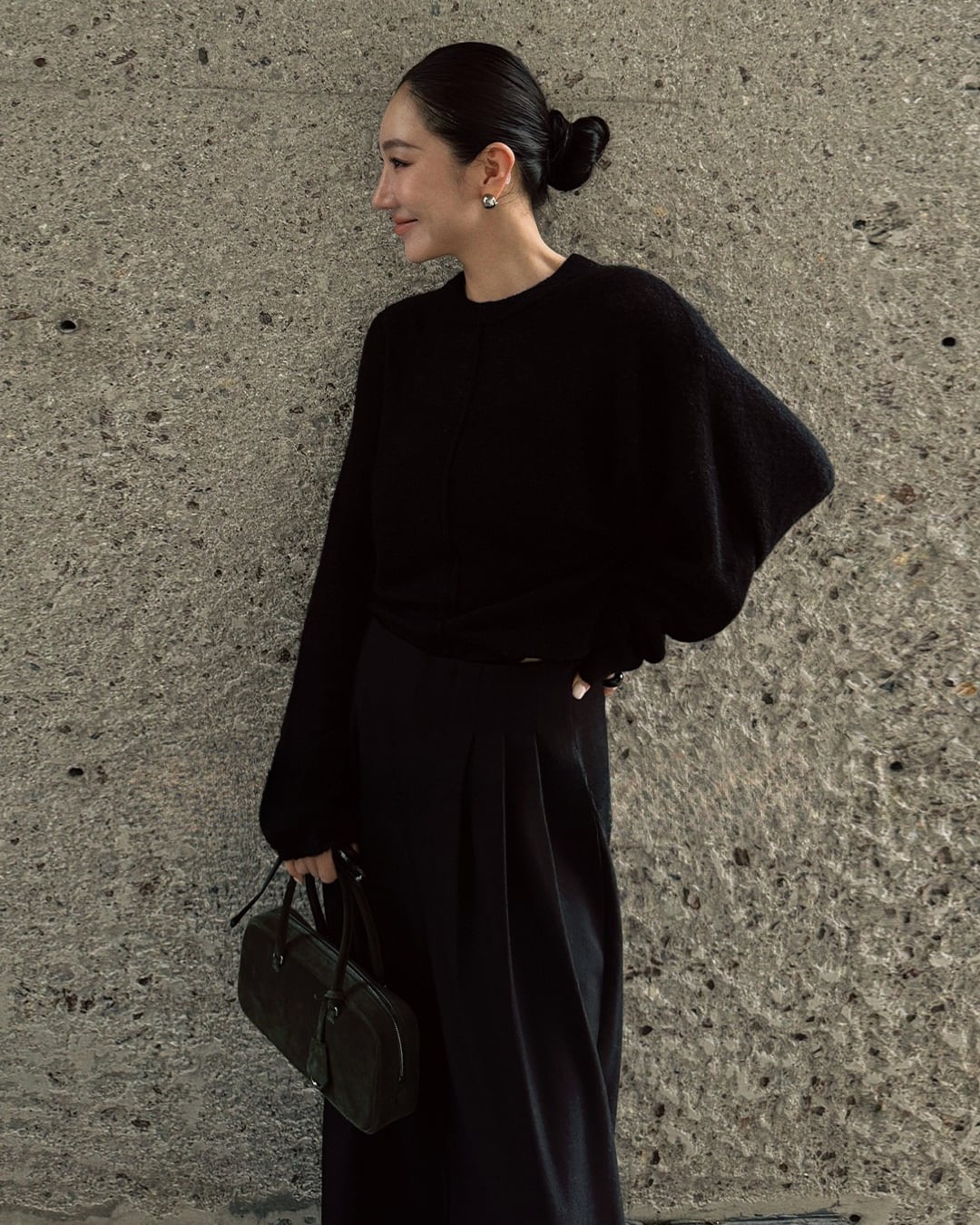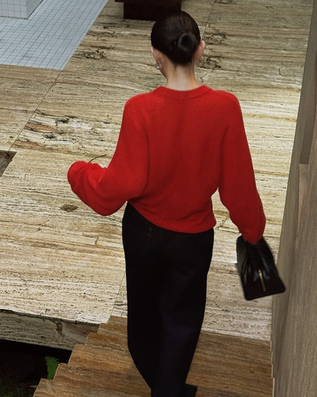 #ニットトップス #ウール混 #ベーシックニット #朱紅ニット #ブラックニット