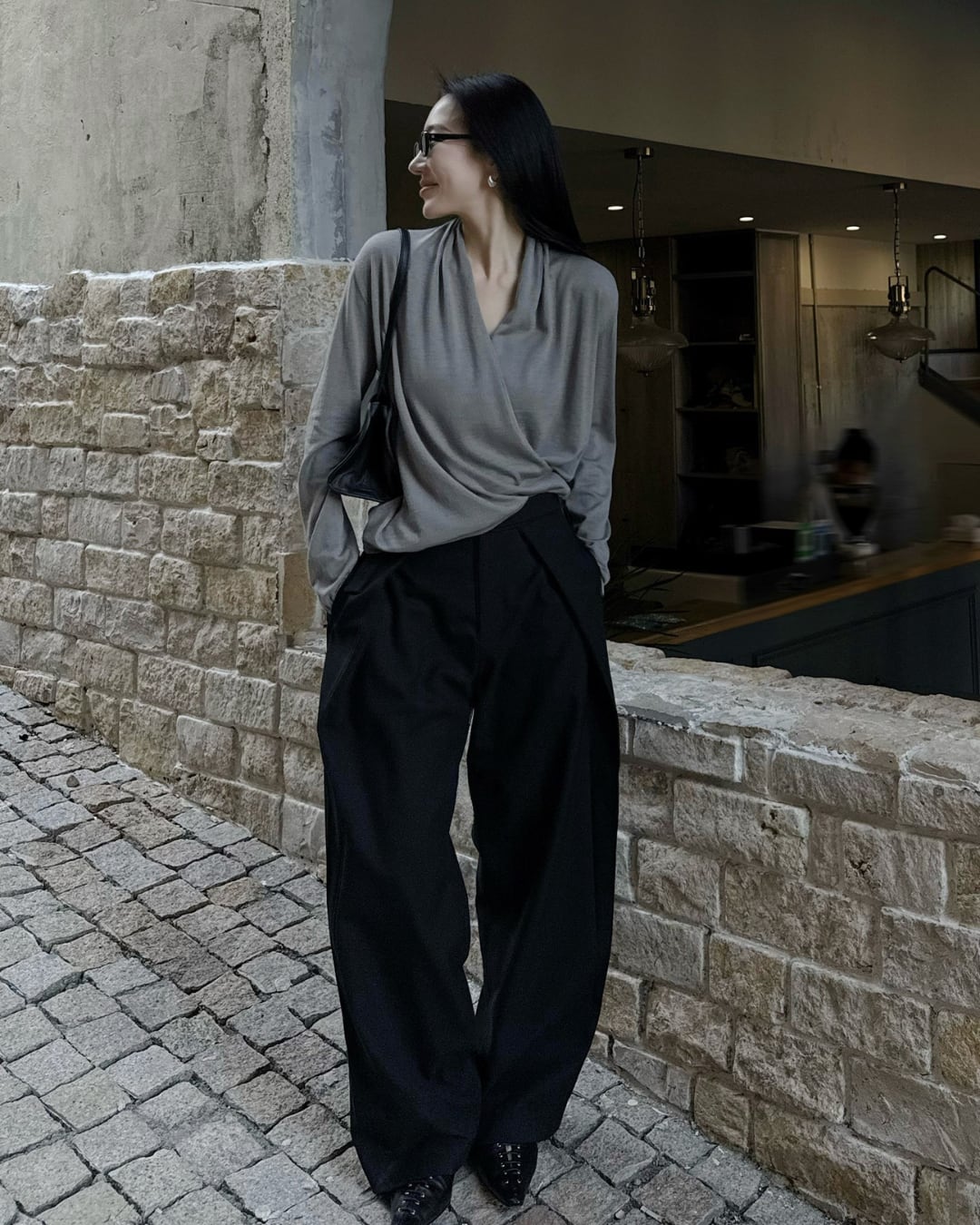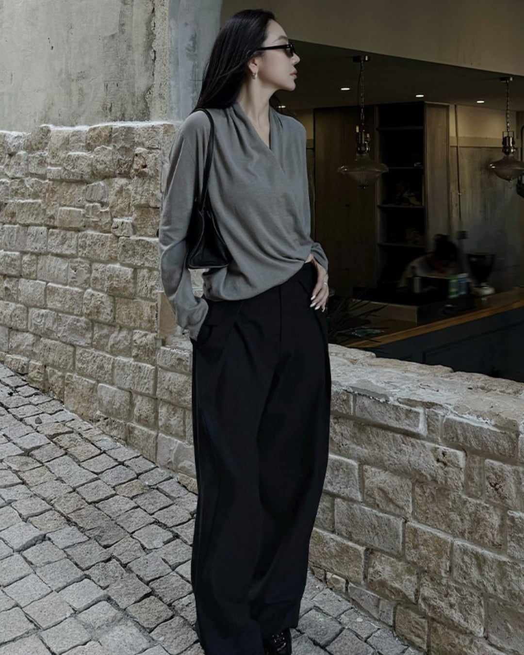 #ミニマル #ブラックコーデ #ドレープパンツ #ワイドパンツ #大人カジュアル #秋コーデ