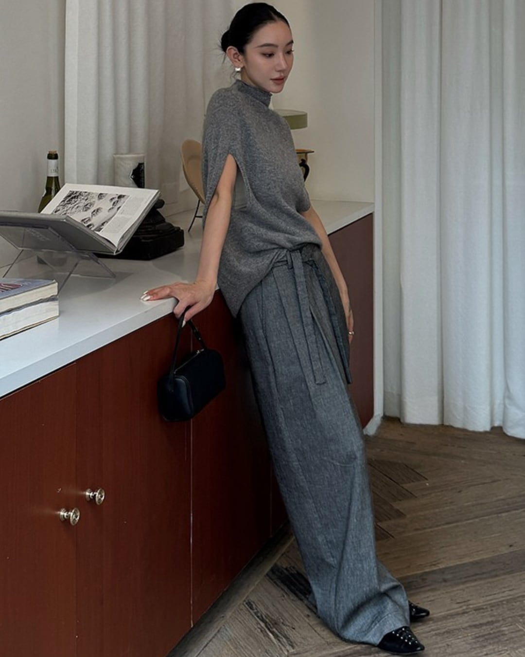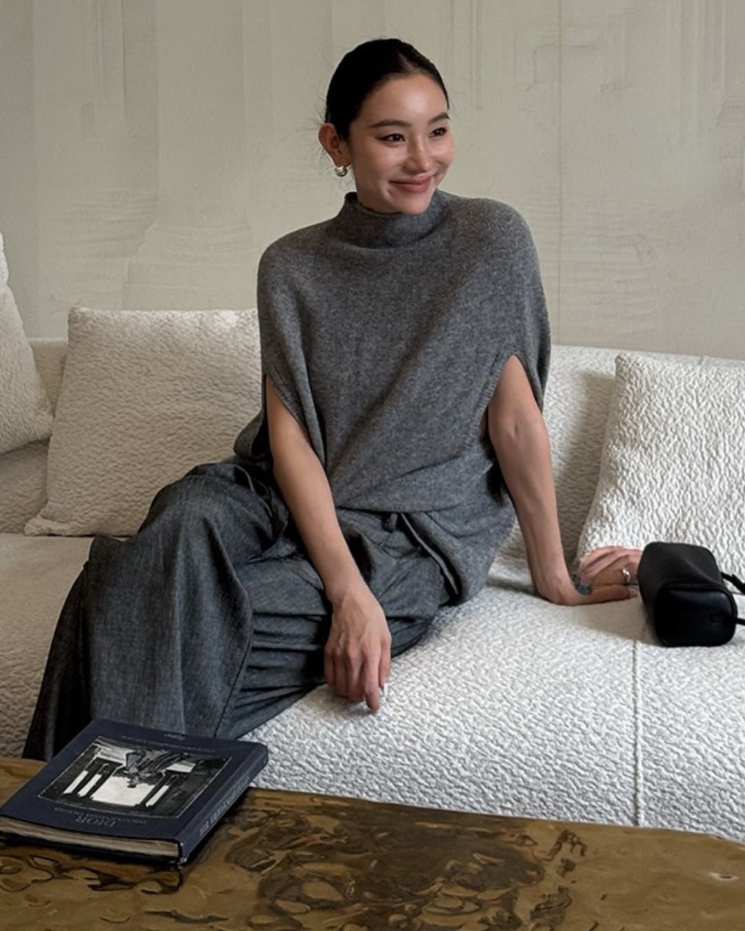 #ハイネック #ニットトップス #ホワイトコーデ #ゆったりシルエット #秋冬ニット #大人カジュアル