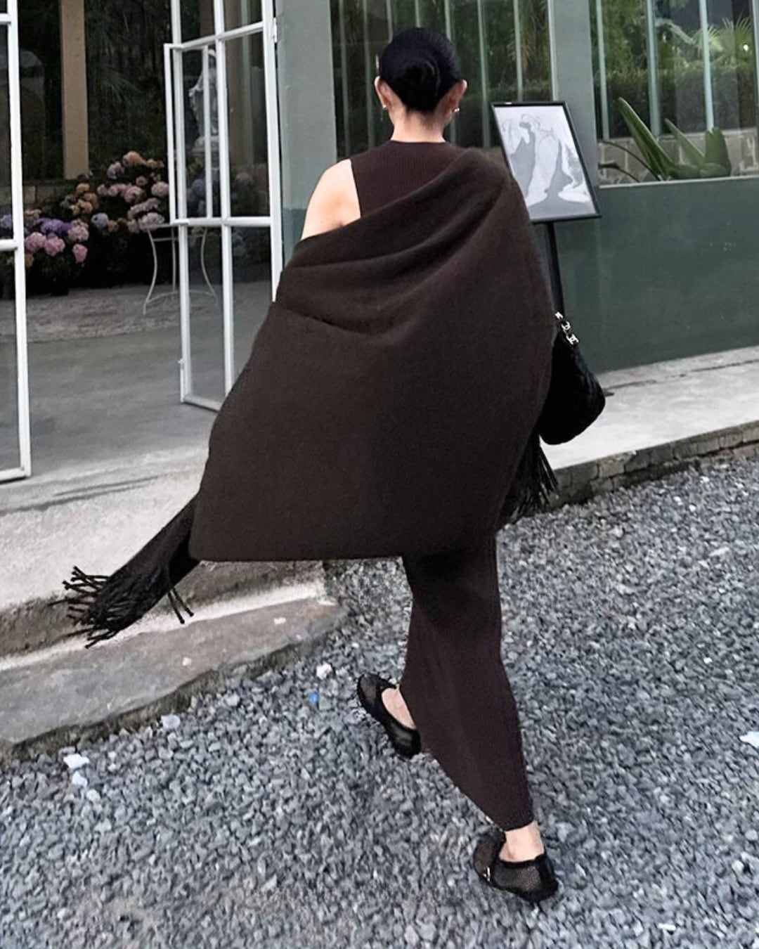 #ニットワンピース #ノースリーブ #ブラウンコーデ #秋ワンピ #Iライン #レディライク