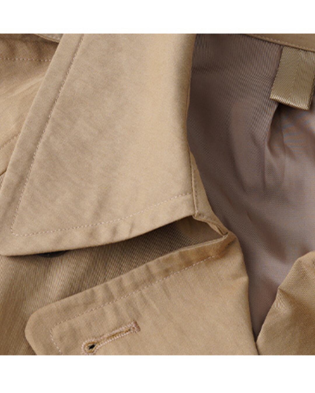 クラシックなシルエットにこなれ感をプラスしたカーキのトレンチコート。ドロップショルダーとルーズなシルエットが、大人の抜け感を演出。シンプルながらもスタイリッシュな雰囲気で、秋冬の主役アウターとして活躍してくれる一着です。