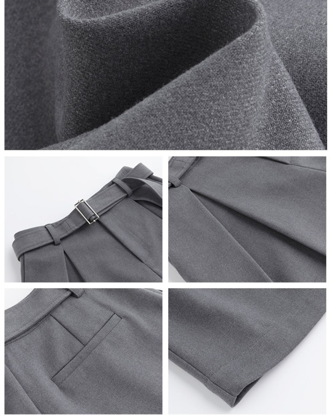 スタイリッシュな通勤スタイルにぴったりなタック入りのグレーショーツ。落ち着いたトーンと高めのウエストデザインで脚長効果も◎セットアップ風にも着られる上品な一枚です。