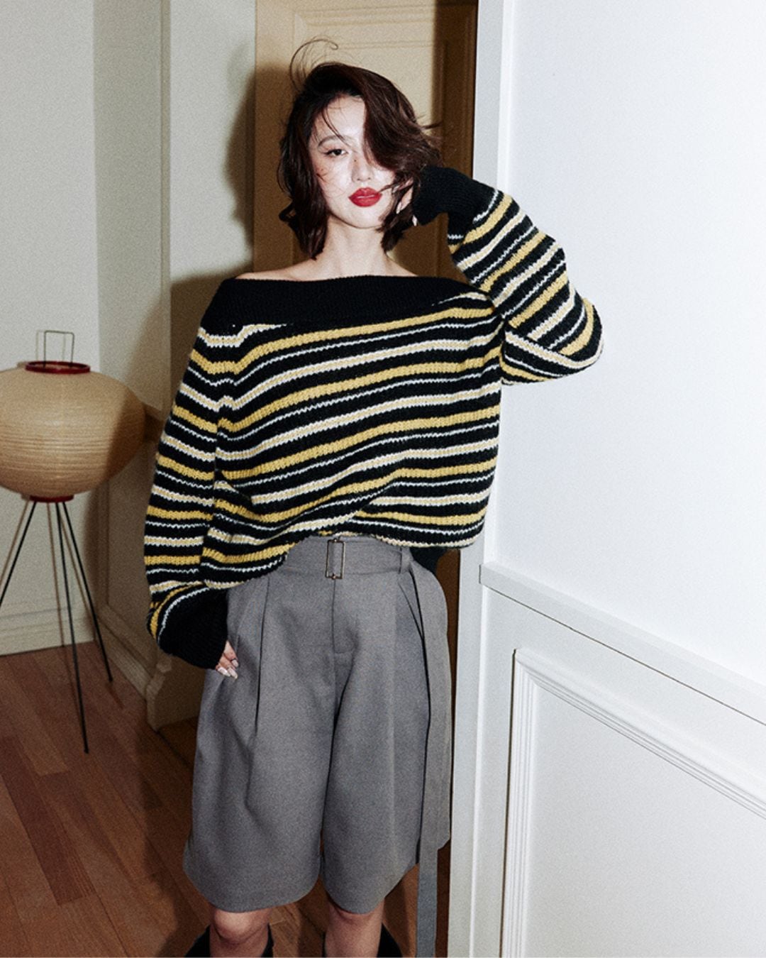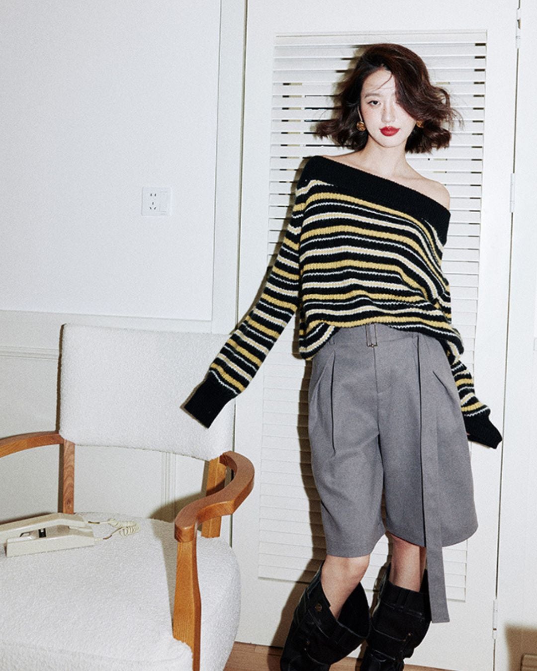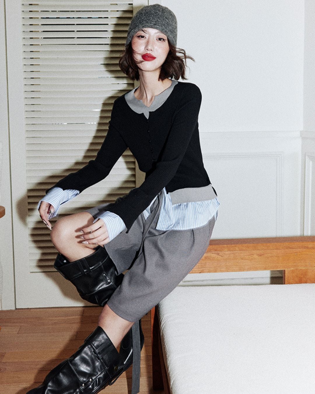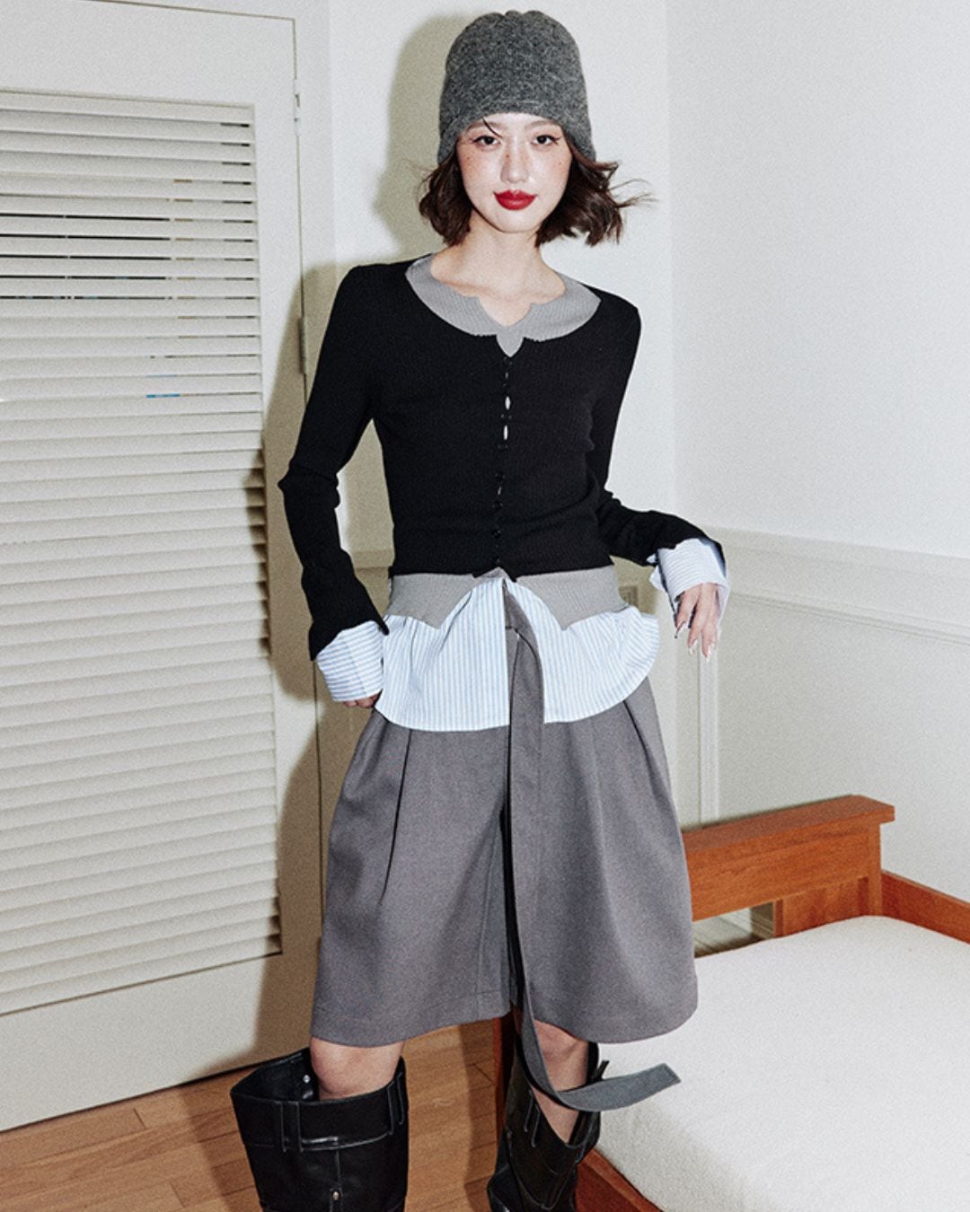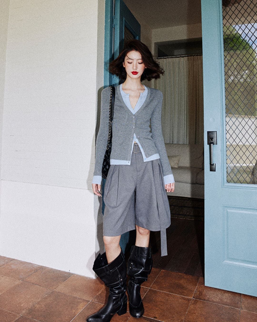 #ハイウエスト #センタープレス #グレーコーデ #ショートパンツ #通勤スタイル #モードカジュアル