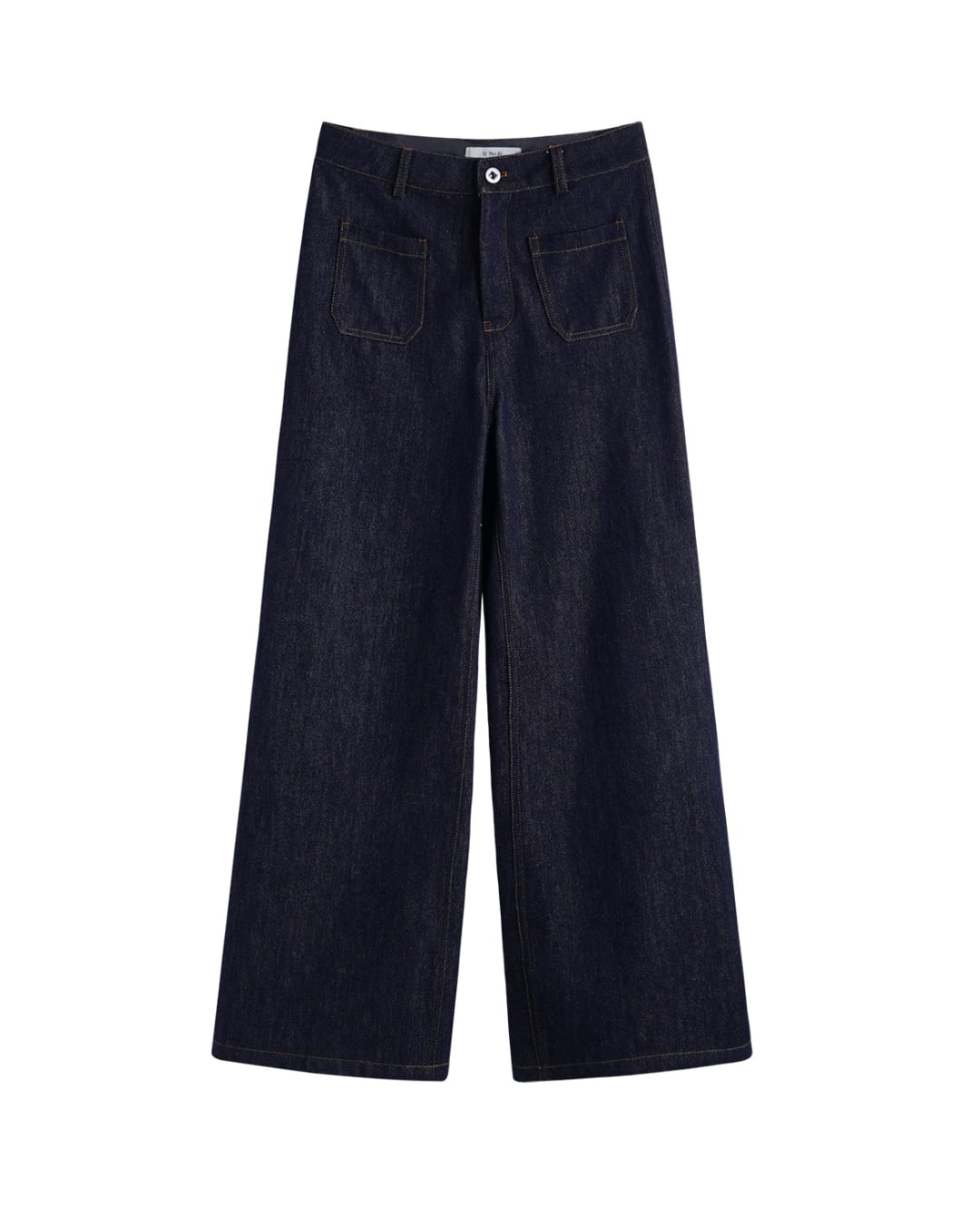 程よい厚みの生地感とハイウエスト設計が魅力のワイドデニムパンツ。すっきりとしたストレートシルエットと深めのフロントポケットで、カジュアルながらも上品な仕上がり。スタイルアップ効果も抜群で、シーズンレスに着回しやすい一本です。